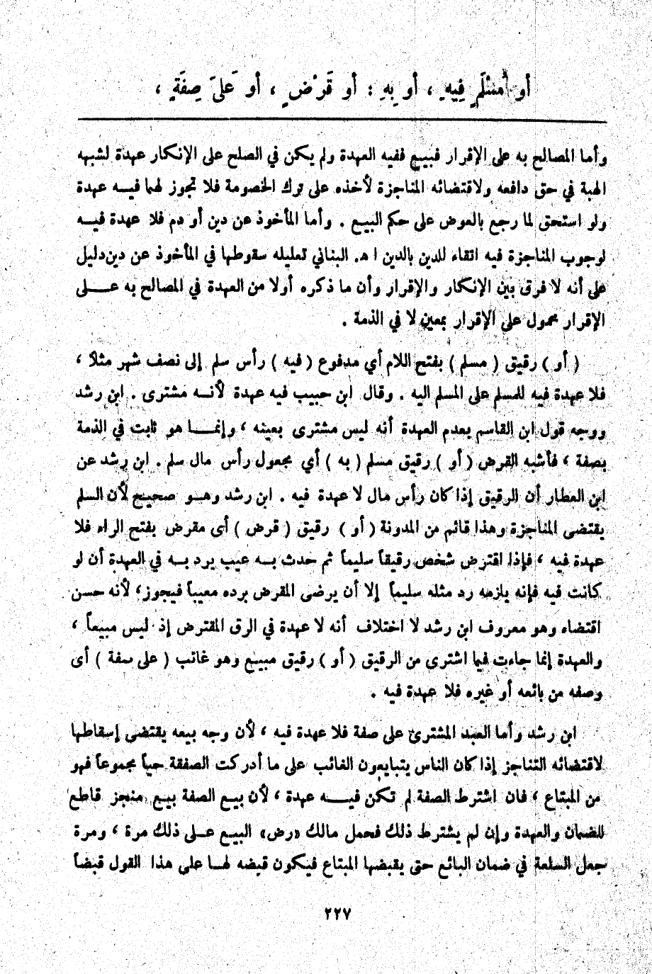 أَوْ مُسْلَمٍ فِيهِ، أَوْ بِهِ: أَوْ قَرْضٍ، أَوْ عَلَى صِفَةٍ،