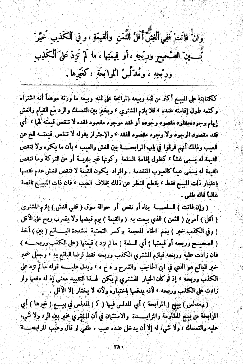 وَجَعْلُ ضَمِيرِ خُيِّرَ لِلْبَائِعِ هُوَ الَّذِي فِي ابْنِ الْحَاجِبِ وَالشَّرْحِ وَ " ح " وَيَدُلُّ عَلَيْهِ قَوْلُهُ مَا لَمْ تَزِدْ عَلَى الْكَذِبِ وَرِبْحِهِ، إذْ لَوْ كَانَ الْخِيَارُ لِلْمُشْتَرِي لَمْ يَكُنْ لِهَذَا التَّقْيِيدِ مَعْنًى إذْ لَهُ دَفْعُهَا وَلَوْ زَادَتْ عَلَى الْكَذِبِ وَرِبْحِهِ لِأَنَّهُ يَدْفَعُهَا بِاخْتِيَارِهِ وَلِأَنَّهُ لَا يَخْتَارُ إلَّا الْأَقَلَّ (وَمُدَلِّسُ) بَيْعِ (الْمُرَابَحَةِ) أَيْ الْمُدَلِّسُ فِيهَا (كَ) الْمُدَلِّسِ فِي بَيْعِ (غَيْرِهَا) أَيْ الْمُرَابَحَةِ مِنْ بَيْعِ الْمُسَاوَمَةِ وَالْمُزَايَدَةِ وَالِاسْتِئْمَانِ فِي أَنَّ الْمُشْتَرِيَ مُخَيَّرٌ بَيْنَ الرَّدِّ وَلَا شَيْءَ عَلَيْهِ وَالتَّمَسُّكِ، وَلَا شَيْءَ لَهُ إلَّا أَنْ يَدْخُلَ عِنْدَهُ عَيْبٌ طفي لَوْ قَالَ: وَعَيْبُ الْمُرَابَحَةِ
