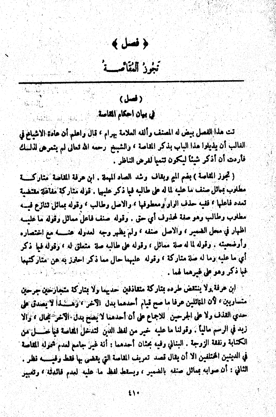 فِي بَيَانِ أَحْكَامِ الْمُقَاصَّةِ تت هَذَا الْفَصْلُ بَيَّضَ لَهُ الْمُصَنِّفُ وَأَلَّفَهُ الْعَلَامَةُ بَهْرَامُ، قَالَ وَاعْلَمْ أَنَّ عَادَةَ الْأَشْيَاخِ فِي الْغَالِبِ أَنْ يُذَيِّلُوا هَذَا الْبَابَ بِذِكْرِ الْمُقَاصَّةِ وَالشَّيْخُ - رَحِمَهُ اللَّهُ تَعَالَى - لَمَّا يَتَعَرَّضْ لِذَلِكَ فَأَرَدْت أَنْ أَذْكُرَ شَيْئًا لِيَكُونَ تَتْمِيمًا لِغَرَضِ النَّاظِرِ.