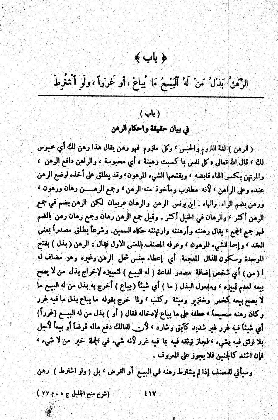 ـــــــــــــــــــــــــــــQ [بَابٌ فِي بَيَان حَقِيقَة وَأَحْكَام الرَّهْن]