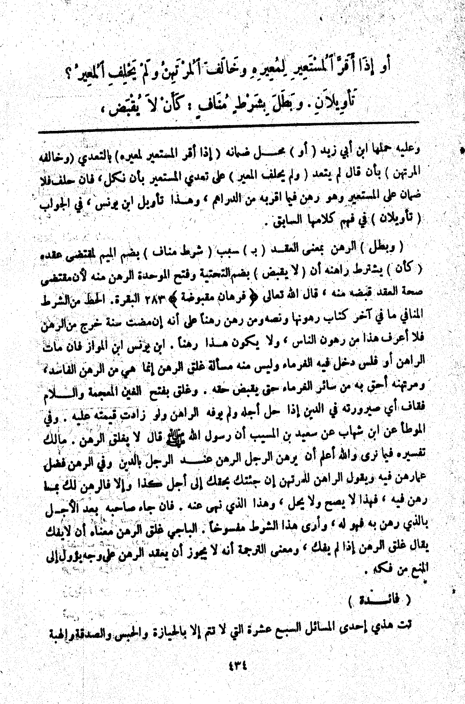 ـــــــــــــــــــــــــــــQوَعَلَيْهِ حَمَلَهَا ابْنُ أَبِي زَيْدٍ (أَوْ) مَحَلُّ ضَمَانِهِ (إذَا أَقَرَّ الْمُسْتَعِيرُ لِمُعِيرِهِ) بِالتَّعَدِّي (وَخَالَفَهُ الْمُرْتَهِنُ) بِأَنْ قَالَ لَمْ يَتَعَدَّ (وَلَمْ يَحْلِفْ الْمُعِيرُ) عَلَى تَعَدِّي الْمُسْتَعِيرِ بِأَنْ نَكَلَ، فَإِنْ حَلَفَ فَلَا ضَمَانَ عَلَى الْمُسْتَعِيرِ وَهُوَ رَهْنٌ فِيمَا أَقَرَّ بِهِ مِنْ الدَّرَاهِمِ، وَهَذَا تَأْوِيلُ ابْنِ يُونُسَ، فِي الْجَوَابِ (تَأْوِيلَانِ) فِي فَهْمِ كَلَامِهَا السَّابِقِ.