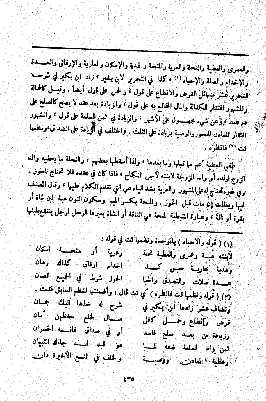 طفي الْعَطِيَّةُ أَعَمُّ مِمَّا قَبْلَهَا وَمَا بَعْدَهَا، وَلِذَا أَسْقَطَهَا بَعْضُهُمْ وَالنِّحْلَةُ مَا يُعْطِيهِ وَالِدُ الزَّوْجِ لِوَلَدِهِ أَوْ وَالِدُ الزَّوْجَةِ لِابْنَتِهِ لِأَجْلِ النِّكَاحِ، فَإِذَا كَانَ فِي عَقْدِهِ فَلَا تَحْتَاجُ لِلْحَوْزِ. وَفِي غَيْرِهِ تَحْتَاجُ لَهُ عَلَى الْمَشْهُورِ وَالْعَرِيَّةُ بِشَدِّ الْيَاءِ هِيَ الَّتِي تَقَدَّمَ الْكَلَامُ عَلَيْهَا، وَقَالَ الْمُصَنِّفُ فِيهَا وَبَطَلَتْ إنْ مَاتَ قَبْلَ الْحَوْزِ. وَالْمِنْحَةِ بِكَسْرِ الْمِيمِ وَسُكُونِ النُّونِ هِبَةُ لَبَنِ شَاةٍ أَوْ بَقَرَةٍ أَوْ نَاقَةٍ، وَعِبَارَةُ الْمُتَيْطِيَّةِ الْمَنِحَةُ هِيَ النَّاقَةُ أَوْ الشَّاةُ يُعِيرُهَا الرَّجُلُ لِرَجُلٍ يَنْتَفِعُ بِلَبَنِهَا
