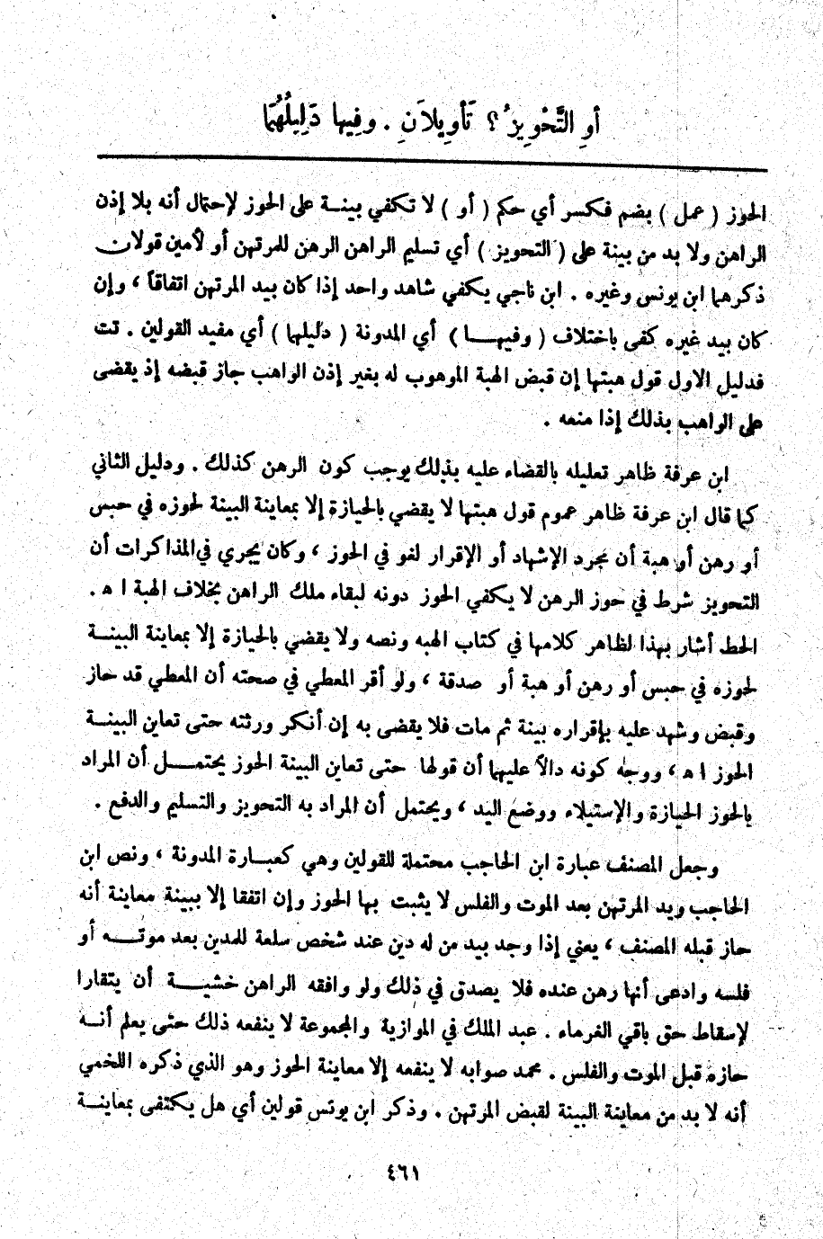 أَوْ التَّحْوِيزُ؟ تَأْوِيلَانِ. وَفِيهِمَا دَلِيلُهُمَا