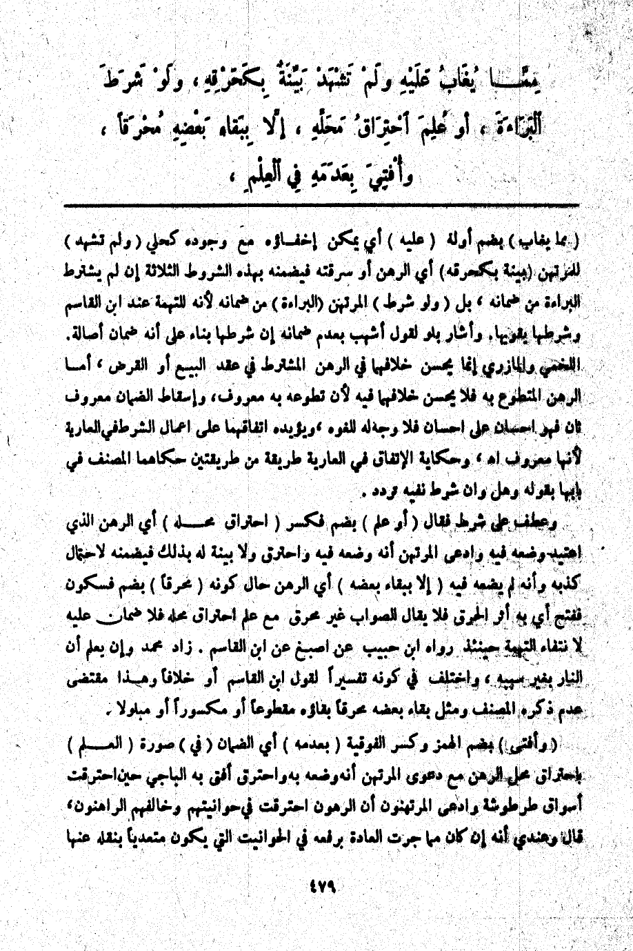 ـــــــــــــــــــــــــــــQمِمَّا يُغَابُ) بِضَمِّ أَوَّلِهِ (عَلَيْهِ) أَيْ يُمْكِنُ إخْفَاؤُهُ مَعَ وُجُودِهِ كَحُلِيٍّ (وَلَمْ تَشْهَدْ) لِلْمُرْتَهِنِ (بَيِّنَةٌ بِكَحَرْقِهِ) أَيْ الرَّهْنِ أَوْ سَرِقَتِهِ فَيَضْمَنُهُ بِهَذِهِ الشُّرُوطِ الثَّلَاثَةِ إنْ لَمْ يَشْتَرِطْ الْبَرَاءَةَ مِنْ ضَمَانِهِ