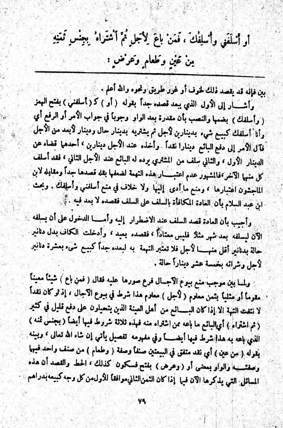 فَمَنْ بَاعَ لِأَجَلٍ ثُمَّ اشْتَرَاهُ بِجِنْسِ ثَمَنِهِ مِنْ عَيْنٍ وَطَعَامٍ وَعَرْضٍ:.
