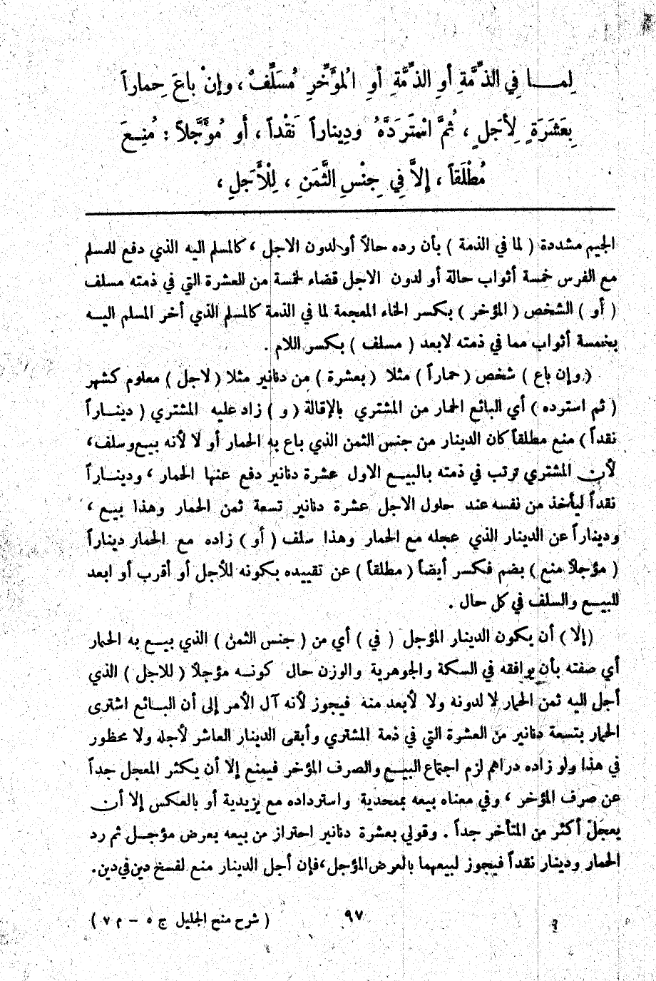 لِمَا فِي الذِّمَّةِ أَوْ الذِّمَّةِ أَوْ الْمُؤَخِّرِ مُسَلِّفٌ.