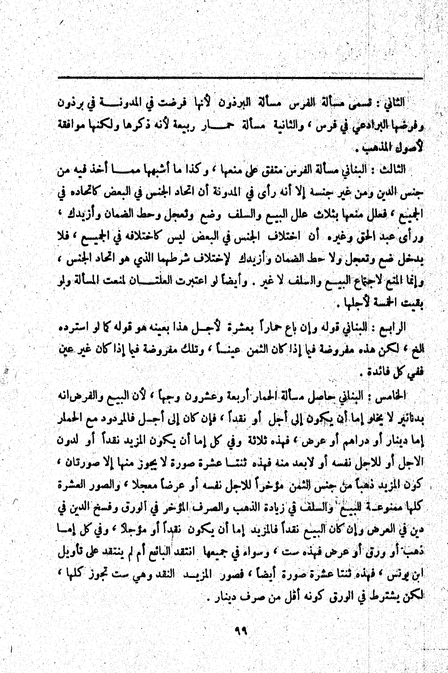 الرَّابِعُ: الْبُنَانِيُّ قَوْلُهُ وَإِنْ بَاعَ حِمَارًا بِعَشَرَةٍ لِأَجَلٍ هَذَا بِعَيْنِهِ هُوَ قَوْلُهُ كَمَا لَوْ اسْتَرَدَّهُ إلَخْ، لَكِنْ هَذِهِ مَفْرُوضَةٌ فِيمَا إذَا كَانَ الثَّمَنُ عَيْنًا، وَتِلْكَ مَفْرُوضَةٌ فِيمَا إذَا كَانَ غَيْرَ عَيْنٍ فَفِي كُلٍّ فَائِدَةٌ. الْخَامِسُ: الْبُنَانِيُّ حَاصِلُ مَسْأَلَةِ الْحِمَارِ أَرْبَعَةٌ وَعِشْرُونَ وَجْهًا لِأَنَّ الْبَيْعَ وَالْفَرْضَ إنَّهُ بِدَنَانِيرَ لَا يَخْلُو إمَّا أَنْ يَكُونَ إلَى أَجَلٍ أَوْ نَقْدًا، فَإِنْ كَانَ إلَى أَجَلٍ فَالْمَرْدُودُ مَعَ الْحِمَارِ إمَّا دِينَارٌ أَوْ دَرَاهِمُ أَوْ عَرْضٌ، فَهَذِهِ ثَلَاثَةٌ وَفِي كُلٍّ إمَّا أَنْ يَكُونَ الْمَزِيدُ نَقْدًا أَوْ لِدُونِ الْأَجَلِ أَوْ لِلْأَجَلِ نَفْسِهِ أَوْ لِأَبْعَدَ مِنْهُ فَهَذِهِ ثِنْتَا عَشْرَةَ صُورَةً لَا يَجُوزُ مِنْهَا إلَّا صُورَتَانِ، كَوْنُ الْمَزِيدِ ذَهَبًا مِنْ جِنْسِ الثَّمَنِ مُؤَخَّرًا لِلْأَجَلِ نَفْسِهِ أَوْ عَرْضًا مُعَجَّلًا، وَالصُّوَرُ الْعَشَرَةُ كُلُّهَا مَمْنُوعَةٌ لِلْبَيْعِ وَالسَّلَفِ فِي زِيَادَةِ الذَّهَبِ وَالصَّرْفِ الْمُؤَخَّرِ فِي الْوَرِقِ وَفَسْخِ الدَّيْنِ فِي دَيْنٍ فِي الْعَرْضِ وَإِنْ كَانَ الْبَيْعُ نَقْدًا فَالْمَزِيدُ إمَّا أَنْ يَكُونَ نَقْدًا أَوْ مُؤَجَّلًا، وَفِي كُلٍّ إمَّا ذَهَبٌ أَوْ وَرِقٌ أَوْ عَرْضٌ فَهَذِهِ سِتٌّ، وَسَوَاءٌ فِي جَمِيعِهَا انْتَقَدَ الْبَائِعُ أَمْ لَمْ يَنْتَقِدُ عَلَى تَأْوِيلِ ابْنِ يُونُسَ، فَهَذِهِ ثِنْتَا عَشْرَةَ صُورَةً أَيْضًا، فَصُوَرُ الْمَزِيدِ النَّقْدُ وَهِيَ سِتٌّ تَجُوزُ كُلُّهَا، لَكِنْ يُشْتَرَطُ فِي الْوَرِقِ كَوْنُهُ أَقَلَّ مِنْ صَرْفِ دِينَارٍ.