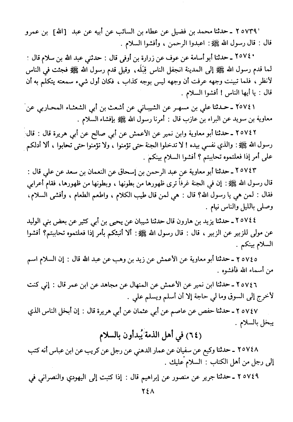 §فِي أَهْلِ الذِّمَّةِ يُبْدَءُونَ بِالسَّلَامِ