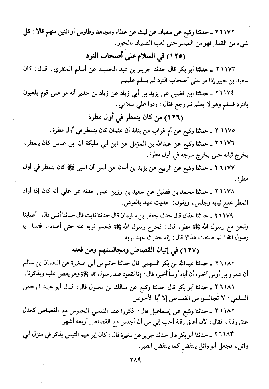 26173 - حَدَّثَنَا أَبُو بَكْرٍ قَالَ: حَدَّثَنَا جَرِيرُ بْنُ عَبْدِ الْحَمِيدِ، عَنْ أَسْلَمَ الْمِنْقَرِيِّ، قَالَ: «كَانَ سَعِيدُ بْنُ جُبَيْرٍ إِذَا §مَرَّ عَلَى أَصْحَابِ النَّرْدِ لَمْ يُسَلِّمْ عَلَيْهِمْ»