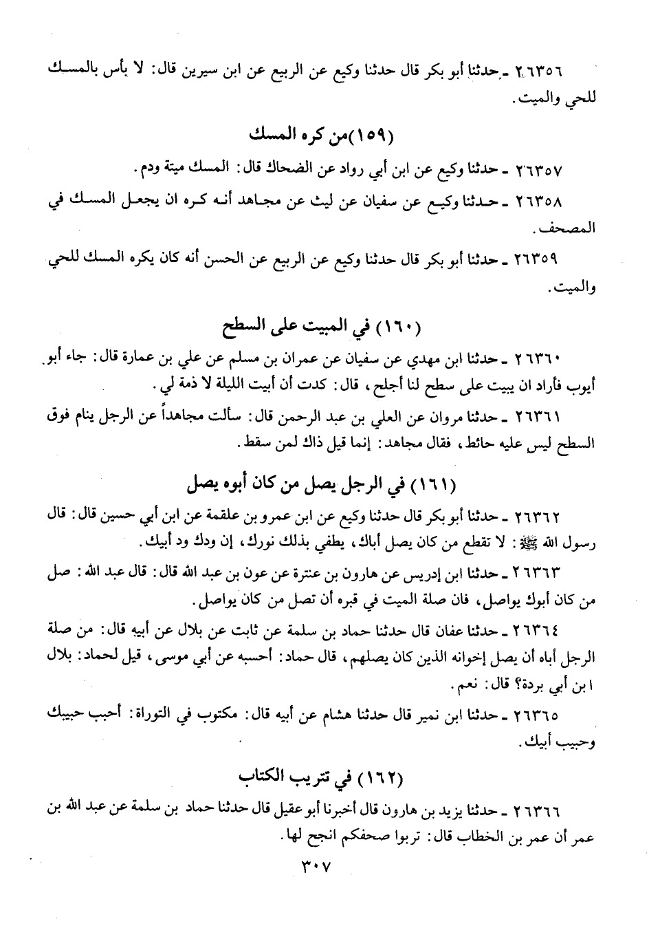 26358 - حَدَّثَنَا وَكِيعٌ، عَنْ سُفْيَانَ، عَنْ لَيْثٍ، عَنْ مُجَاهِدٍ: أَنَّهُ §كَرِهَ أَنْ يُجْعَلَ الْمِسْكُ فِي الْمُصْحَفِ "