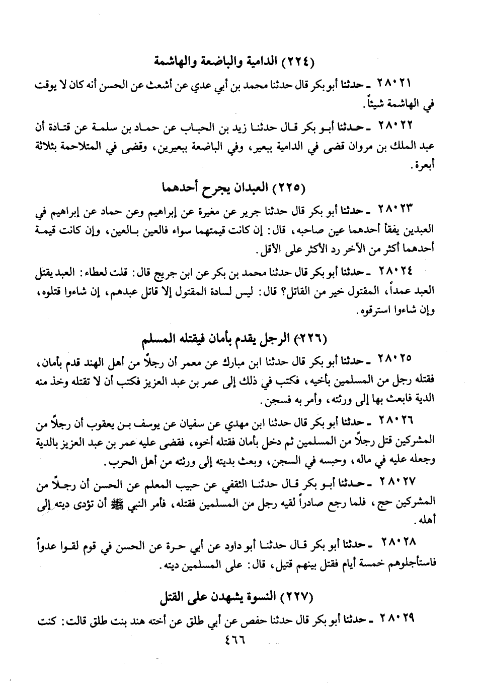 28027 - حَدَّثَنَا أَبُو بَكْرٍ قَالَ: حَدَّثَنَا الثَّقَفِيُّ، عَنْ حَبِيبٍ الْمُعَلِّمِ، عَنِ الْحَسَنِ: «أَنَّ رَجُلًا مِنَ الْمُشْرِكِينَ حَجَّ , فَلَمَّا رَجَعَ صَادِرًا لَقِيَهُ رَجُلٌ مِنَ الْمُسْلِمِينَ فَقَتَلَهُ , §فَأَمَرَ النَّبِيُّ صَلَّى اللهُ عَلَيْهِ وَسَلَّمَ أَنْ تُؤَدَّى دِيَتُهُ إِلَى أَهْلِهِ»