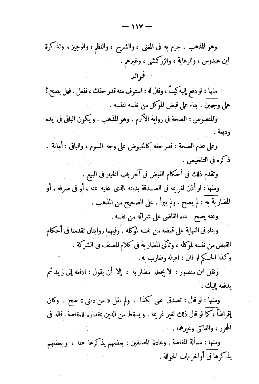 وَمِنْهَا: لَوْ قَالَ: تَصَدَّقْ عَنِّي بِكَذَا. وَلَمْ يَقُلْ " مِنْ دَيْنِي " صَحَّ. وَكَانَ إقْرَاضًا كَمَا لَوْ قَالَ ذَلِكَ لِغَيْرِ غَرِيمِهِ. وَيَسْقُطُ مِنْ الدَّيْنِ بِمِقْدَارِهِ لِلْمُقَاصَّةِ. قَالَهُ فِي الْمُحَرَّرِ، وَالْفَائِقِ وَغَيْرِهِمَا. وَمِنْهَا: مَسْأَلَةُ الْمُقَاصَّةِ. وَعَادَةُ الْمُصَنِّفِينَ: بَعْضُهُمْ يَذْكُرُهَا هُنَا، وَبَعْضُهُمْ يَذْكُرُهَا فِي أَوَاخِرِ بَابِ الْحَوَالَةِ.