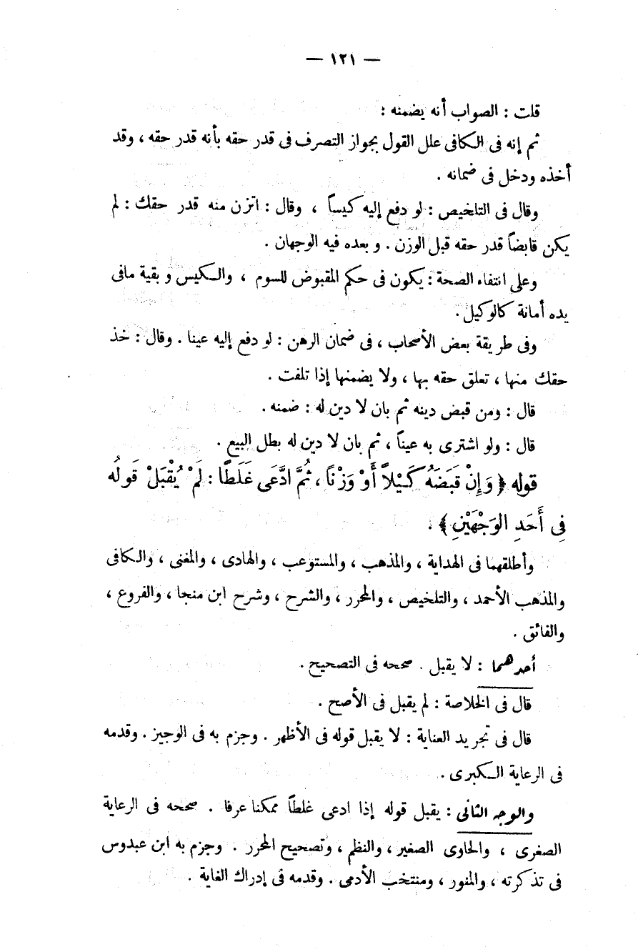 قَوْلُهُ (وَإِنْ قَبَضَهُ كَيْلًا أَوْ وَزْنًا، ثُمَّ ادَّعَى غَلَطًا: لَمْ يُقْبَلْ قَوْلُهُ فِي أَحَدِ الْوَجْهَيْنِ) . وَأَطْلَقَهُمَا فِي الْهِدَايَةِ، وَالْمُذْهَبِ، وَالْمُسْتَوْعِبِ، وَالْهَادِي، وَالْمُغْنِي، وَالْكَافِي وَالْمَذْهَبِ الْأَحْمَدِ، وَالتَّلْخِيصِ، وَالْمُحَرَّرِ، وَالشَّرْحِ، وَشَرْحِ ابْنِ مُنَجَّى، وَالْفُرُوعِ، وَالْفَائِقِ.