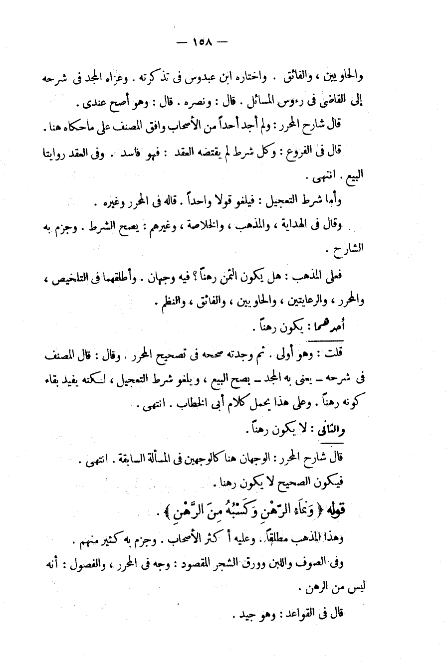 وَالْحَاوِيَيْنِ، وَالْفَائِقِ. وَاخْتَارَهُ ابْنُ عَبْدُوسٍ فِي تَذْكِرَتِهِ. وَعَزَاهُ الْمَجْدُ فِي شَرْحِهِ إلَى الْقَاضِي فِي رُءُوسِ الْمَسَائِلِ. قَالَ: وَنَصَرَهُ. قَالَ: وَهُوَ أَصَحُّ عِنْدِي. قَالَ شَارِحُ الْمُحَرَّرِ: وَلَمْ أَجِدْ أَحَدًا مِنْ الْأَصْحَابِ وَافَقَ الْمُصَنِّفَ عَلَى مَا حَكَاهُ هُنَا. قَالَ فِي الْفُرُوعِ: وَكُلُّ شَرْطٍ لَمْ يَقْتَضِهِ الْعَقْدُ: فَهُوَ فَاسِدٌ. وَفِي الْعَقْدِ رِوَايَتَا الْبَيْعِ. انْتَهَى.