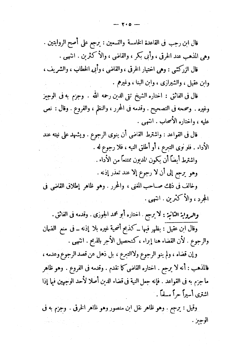 قَالَ ابْنُ رَجَبٍ فِي الْقَاعِدَةِ الْخَامِسَةِ وَالتِّسْعِينَ: يَرْجِعُ عَلَى أَصَحِّ الرِّوَايَتَيْنِ. وَهِيَ الْمَذْهَبُ عِنْدَ الْخِرَقِيِّ، وَأَبِي بَكْرٍ، وَالْقَاضِي، وَالْأَكْثَرِينَ. انْتَهَى.