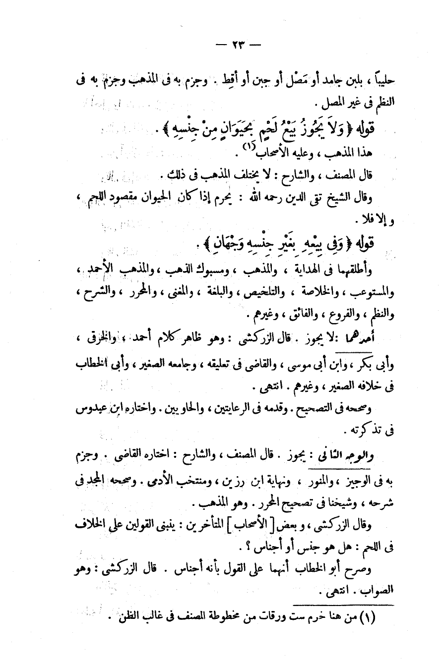 وَصَحَّحَهُ فِي التَّصْحِيحِ. وَقَدَّمَهُ فِي الرِّعَايَتَيْنِ، وَالْحَاوِيَيْنِ. وَاخْتَارَهُ ابْنُ عَبْدُوسٍ فِي تَذْكِرَتِهِ، وَالْوَجْهُ الثَّانِي: يَجُوزُ. قَالَ الْمُصَنِّفُ، وَالشَّارِحُ: اخْتَارَهُ الْقَاضِي. وَجَزَمَ بِهِ فِي الْوَجِيزِ، وَالْمُنَوِّرِ، وَنِهَايَةِ ابْنِ رَزِينٍ، وَمُنْتَخَبِ الْأَدَمِيِّ. وَصَحَّحَهُ الْمَجْدُ فِي شَرْحِهِ، وَشَيْخُنَا فِي تَصْحِيحِ الْمُحَرَّرِ. وَهُوَ الْمَذْهَبُ. وَقَالَ الزَّرْكَشِيُّ، وَبَعْضُ [الْأَصْحَابِ] الْمُتَأَخِّرِينَ: يَنْبَنِي الْقَوْلَيْنِ عَلَى الْخِلَافِ فِي اللَّحْمِ: هَلْ هُوَ جِنْسٌ أَوْ أَجْنَاسٌ؟ . وَصَرَّحَ أَبُو الْخَطَّابِ أَنَّهُمَا عَلَى الْقَوْلِ بِأَنَّهُ أَجْنَاسٌ. قَالَ الزَّرْكَشِيُّ: وَهُوَ الصَّوَابُ. انْتَهَى.