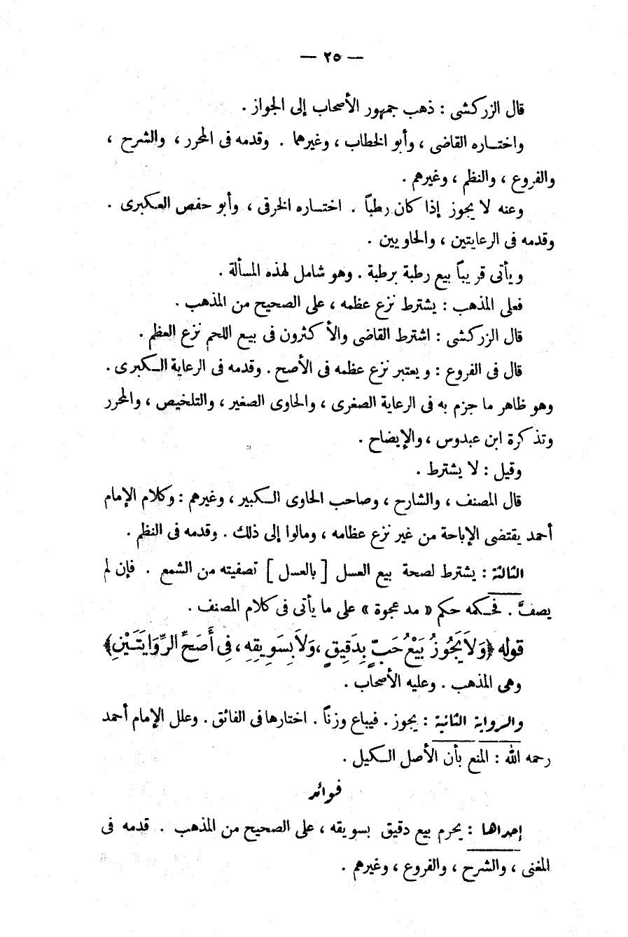 قَالَ الزَّرْكَشِيُّ ذَهَبَ جُمْهُورُ الْأَصْحَابِ إلَى الْجَوَازِ. وَاخْتَارَهُ الْقَاضِي، وَأَبُو الْخَطَّابِ، وَغَيْرُهُمَا. وَقَدَّمَهُ فِي الْمُحَرَّرِ، وَالشَّرْحِ وَالْفُرُوعِ، وَالنَّظْمِ، وَغَيْرِهِمْ. وَعَنْهُ لَا يَجُوزُ إذَا كَانَ رُطَبًا. اخْتَارَهُ الْخِرَقِيُّ، وَأَبُو حَفْصٍ الْعُكْبَرِيُّ. وَقَدَّمَهُ فِي الرِّعَايَتَيْنِ، وَالْحَاوِيَيْنِ. وَيَأْتِي قَرِيبًا بَيْعُ رَطْبَةٍ بِرَطْبَةٍ. وَهُوَ شَامِلٌ لِهَذِهِ الْمَسْأَلَةِ. فَعَلَى الْمَذْهَبِ: يُشْتَرَطُ نَزْعُ عَظْمِهِ، عَلَى الصَّحِيحِ مِنْ الْمَذْهَبِ. قَالَ الزَّرْكَشِيُّ: اشْتِرَاطُ الْقَاضِي وَالْأَكْثَرُونَ فِي بَيْعِ اللَّحْمِ نَزْعَ الْعَظْمِ. قَالَ فِي الْفُرُوعِ: وَيُعْتَبَرُ نَزْعُ عَظْمِهِ فِي الْأَصَحِّ وَقَدَّمَهُ فِي الرِّعَايَةِ الْكُبْرَى. هُوَ ظَاهِرُ مَا جَزَمَ بِهِ فِي الرِّعَايَةِ الصُّغْرَى، وَالْحَاوِي الصَّغِيرِ، وَالتَّلْخِيصِ، وَالْمُحَرَّرِ وَتَذْكِرَةِ ابْنِ عَبْدُوسٍ، وَالْإِيضَاحِ. وَقِيلَ: لَا يُشْتَرَطُ. قَالَ الْمُصَنِّفُ، وَالشَّارِحُ، وَصَاحِبُ الْحَاوِي الْكَبِيرِ، وَغَيْرُهُمْ: وَكَلَامُ الْإِمَامِ أَحْمَدَ يَقْتَضِي الْإِبَاحَةَ مِنْ غَيْرِ نَزْعِ عِظَامِهِ، وَمَالُوا إلَى ذَلِكَ. وَقَدَّمَهُ فِي النَّظْمِ.
