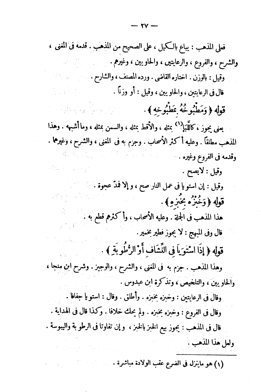 قَوْلُهُ (وَخُبْزُهُ بِخُبْزِهِ) هَذَا الْمَذْهَبُ فِي الْجُمْلَةِ. وَعَلَيْهِ الْأَصْحَابُ، وَأَكْثَرُهُمْ قَطَعَ بِهِ. قَالَ وَفِي الْمُبْهِجِ: لَا يَجُوزُ فَطَيْرٌ بِخَمِيرٍ قَوْلُهُ (إذَا اسْتَوَيَا فِي النِّشَافِ أَوْ الرُّطُوبَةِ) . وَهَذَا الْمَذْهَبُ جَزَمَ بِهِ فِي الْمُغْنِي، وَالشَّرْحِ، وَالْوَجِيزِ، وَشَرْحِ ابْنِ مُنَجَّى، وَالْحَاوِيَيْنِ، وَالتَّلْخِيصِ، وَتَذْكِرَةِ ابْنِ عَبْدُوسٍ. وَقَالَ فِي الرِّعَايَتَيْنِ: وَخُبْزُهُ بِخُبْزِهِ. وَأَطْلَقَ. وَقَالَ: اسْتَوَيَا جَفَافًا. وَقَالَ فِي الْفُرُوعِ: وَخُبْزُهُ بِخُبْزِهِ. وَلَمْ يَحْكِ خِلَافًا. وَكَذَا قَالَ فِي الْهِدَايَةِ. قَالَ فِي الْمَذْهَبِ: يَجُوزُ بَيْعُ الْخُبْزِ بِالْخُبْزِ، وَإِنْ تَفَاوَتَا فِي الرُّطُوبَةِ وَالْيُبُوسَةِ. وَلَعَلَّ هَذَا الْمَذْهَبَ