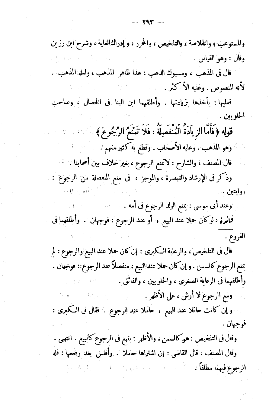 وَالْمُسْتَوْعِبِ، وَالْخُلَاصَةِ، وَالتَّلْخِيصِ، وَالْمُحَرَّرِ، وَإِدْرَاكِ الْغَايَةِ، وَشَرْحِ ابْنِ رَزِينٍ وَقَالَ: وَهُوَ الْقِيَاسُ. قَالَ فِي الْمُذْهَبِ، وَمَسْبُوكِ الذَّهَبِ: هَذَا ظَاهِرُ الْمَذْهَبِ، وَلَعَلَّهُ الْمَذْهَبُ؛ لِأَنَّهُ الْمَنْصُوصُ. وَعَلَيْهِ الْأَكْثَرُ. فَعَلَيْهَا: يَأْخُذُهَا بِزِيَادَتِهَا. وَأَطْلَقَهُمَا ابْنُ الْبَنَّا فِي الْخِصَالِ، وَصَاحِبُ الْحَاوِيَيْنِ.