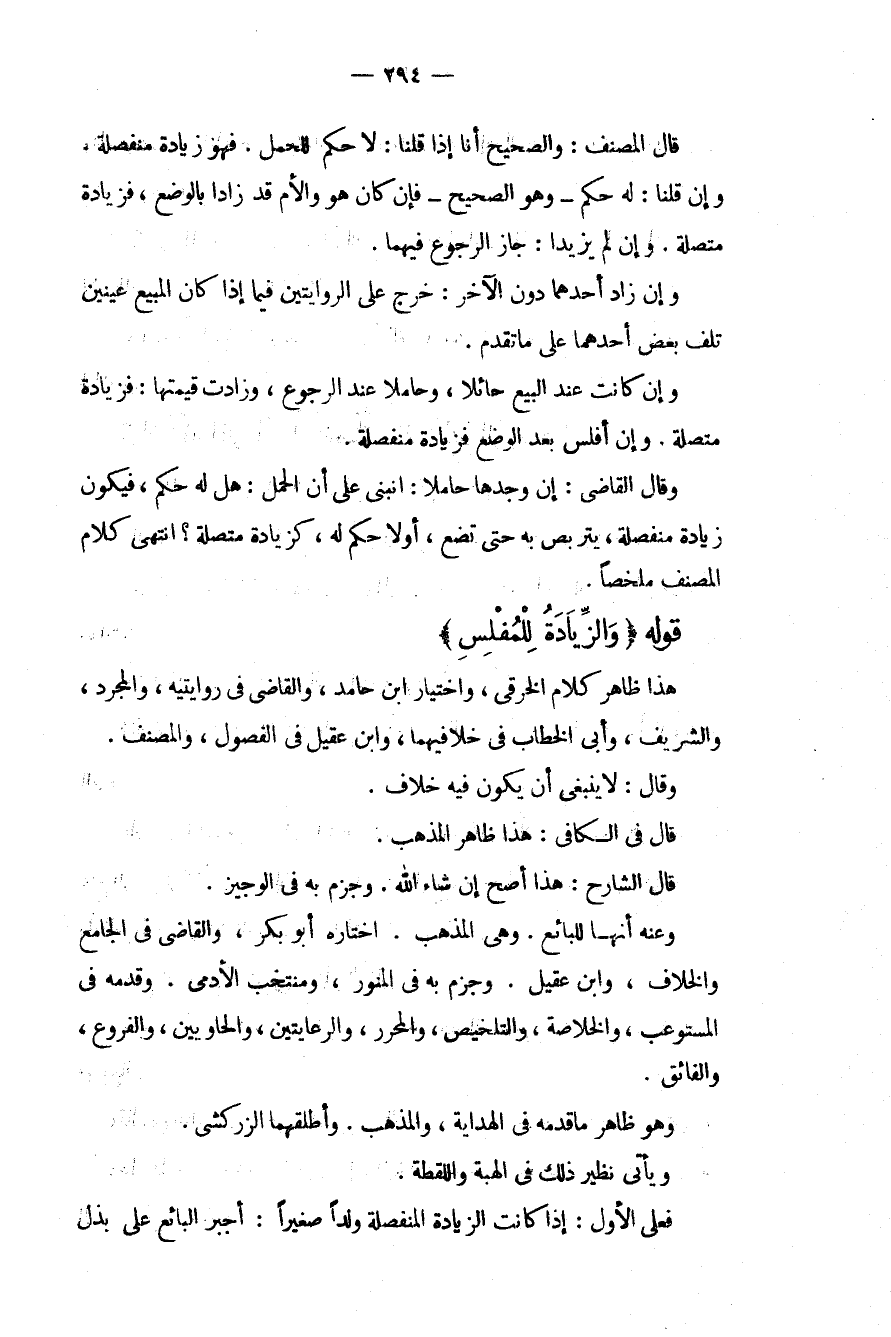قَالَ الْمُصَنِّفُ: وَالصَّحِيحُ أَنَّا إذَا قُلْنَا: لَا حُكْمَ لِلْحَمْلِ. فَهُوَ زِيَادَةٌ مُنْفَصِلَةٌ. وَإِنْ قُلْنَا: لَهُ حُكْمٌ وَهُوَ الصَّحِيحُ فَإِنْ كَانَ هُوَ وَالْأُمُّ قَدْ زَادَ بِالْوَضْعِ، فَزِيَادَةٌ مُتَّصِلَةٌ. وَإِنْ لَمْ يَزِيدَا: جَازَ الرُّجُوعُ فِيهِمَا. وَإِنْ زَادَ أَحَدُهُمَا دُونَ الْآخَرِ: خُرِّجَ عَلَى الرِّوَايَتَيْنِ فِيمَا إذَا كَانَ الْمَبِيعُ عَيْنَيْنِ تَلِفَ بَعْضُ أَحَدِهِمَا عَلَى مَا تَقَدَّمَ. وَإِنْ كَانَتْ عِنْدَ الْبَيْعِ حَائِلًا، وَحَامِلًا عِنْدَ الرُّجُوعِ، وَزَادَتْ قِيمَتُهَا: فَزِيَادَةٌ مُتَّصِلَةٌ. وَإِنْ أَفْلَسَ بَعْدَ الْوَضْعِ فَزِيَادَةٌ مُنْفَصِلَةٌ. وَقَالَ الْقَاضِي: إنْ وَجَدَهَا حَامِلًا: انْبَنَى عَلَى أَنَّ الْحَمْلَ: هَلْ لَهُ حُكْمٌ، فَيَكُونَ زِيَادَةً مُنْفَصِلَةً، يُتَرَبَّصُ بِهِ حَتَّى تَضَعَ، أَوْ لَا حُكْمَ لَهُ كَزِيَادَةٍ مُتَّصِلَةٍ؟ انْتَهَى كَلَامُ الْمُصَنِّفِ مُلَخَّصًا قَوْلُهُ (وَالزِّيَادَةُ لِلْمُفْلِسِ) هَذَا ظَاهِرُ كَلَامِ الْخِرَقِيِّ، وَاخْتِيَارُ ابْنِ حَامِدٍ، وَالْقَاضِي فِي رِوَايَتَيْهِ، وَالْمُجَرَّدِ، وَالشَّرِيفِ، وَأَبِي الْخَطَّابِ فِي خِلَافَيْهِمَا، وَابْنِ عَقِيلٍ فِي الْفُصُولِ، وَالْمُصَنِّفِ. وَقَالَ: لَا يَنْبَغِي أَنْ يَكُونَ فِيهِ خِلَافٌ. قَالَ فِي الْكَافِي: هَذَا ظَاهِرُ الْمَذْهَبِ. قَالَ الشَّارِحُ: هَذَا أَصَحُّ إنْ شَاءَ اللَّهُ. وَجَزَمَ بِهِ فِي الْوَجِيزِ. وَعَنْهُ: أَنَّهَا لِلْبَائِعِ. وَهِيَ الْمَذْهَبُ. اخْتَارَهُ أَبُو بَكْرٍ، وَالْقَاضِي فِي الْجَامِعِ وَالْخِلَافِ، وَابْنُ عَقِيلٍ. وَجَزَمَ بِهِ فِي الْمُنَوِّرِ، وَمُنْتَخَبِ الْأَدَمِيِّ. وَقَدَّمَهُ فِي الْمُسْتَوْعِبِ، وَالْخُلَاصَةِ، وَالتَّلْخِيصِ، وَالْمُحَرَّرِ، وَالرِّعَايَتَيْنِ، وَالْحَاوِيَيْنِ، وَالْفُرُوعِ، وَالْفَائِقِ. وَهُوَ ظَاهِرُ مَا قَدَّمَهُ فِي الْهِدَايَةِ، وَالْمُذْهَبِ. وَأَطْلَقَهُمَا الزَّرْكَشِيُّ. وَيَأْتِي نَظِيرُ ذَلِكَ فِي الْهِبَةِ وَاللُّقَطَةِ. فَعَلَى الْأَوَّلِ: إذَا كَانَتْ الزِّيَادَةُ الْمُنْفَصِلَةُ وَلَدًا صَغِيرًا: أُجْبِرَ الْبَائِعُ عَلَى بَذْلِ