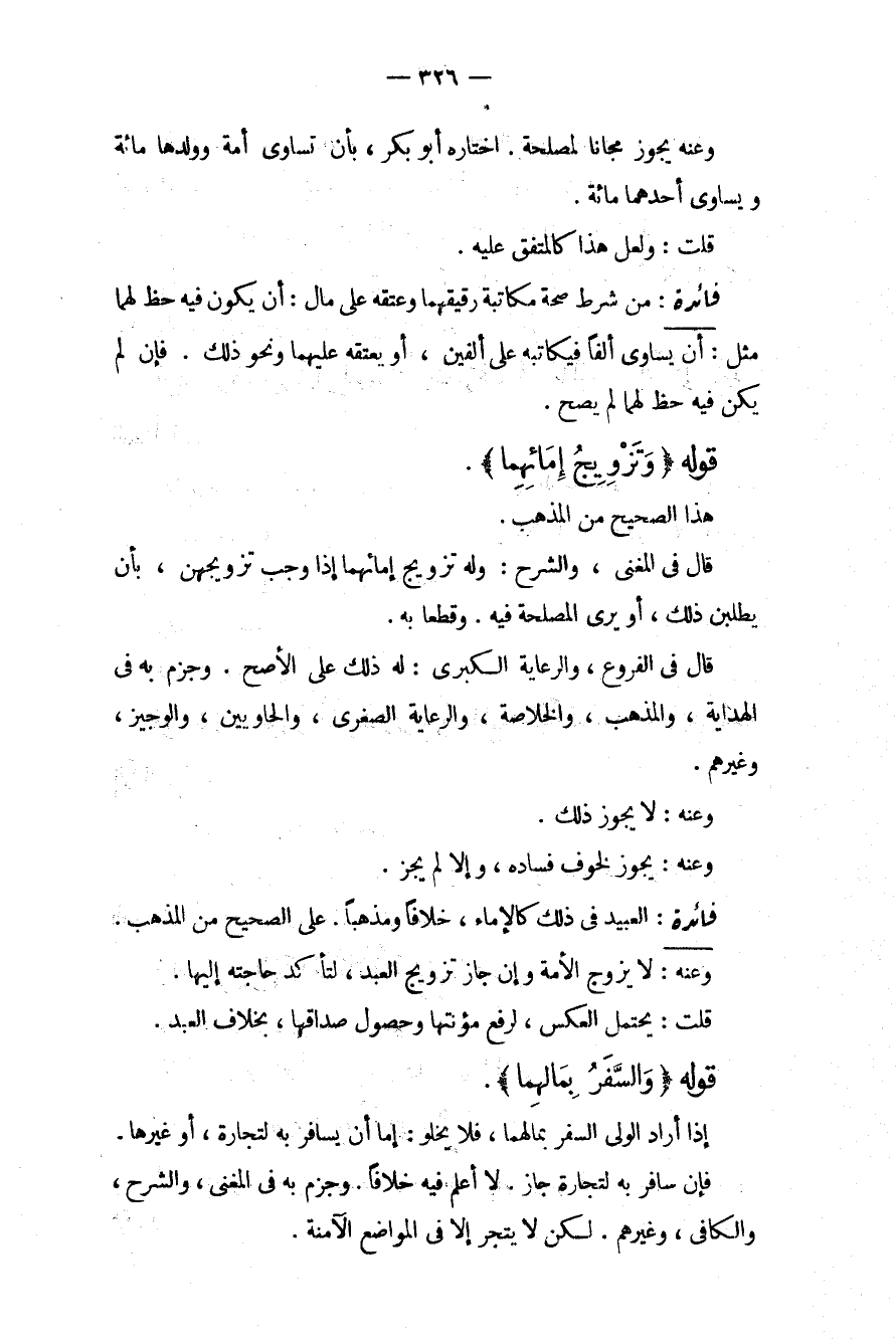 قَوْلُهُ (وَتَزْوِيجُ إمَائِهِمَا) . . هَذَا الصَّحِيحُ مِنْ الْمَذْهَبِ. قَالَ فِي الْمُغْنِي، وَالشَّرْحِ: وَلَهُ تَزْوِيجُ إمَائِهِمَا إذَا وَجَبَ تَزْوِيجُهُنَّ، بِأَنْ يَطْلُبْنَ ذَلِكَ، أَوْ يَرَى الْمَصْلَحَةَ فِيهِ. وَقَطَعَا بِهِ. قَالَ فِي الْفُرُوعِ، وَالرِّعَايَةِ الْكُبْرَى: لَهُ ذَلِكَ عَلَى الْأَصَحِّ. وَجَزَمَ بِهِ فِيهِ الْهِدَايَةِ، وَالْمُذْهَبِ، وَالْخُلَاصَةِ، وَالرِّعَايَةِ الصُّغْرَى، وَالْحَاوِيَيْنِ، وَالْوَجِيزِ، وَغَيْرِهِمْ. وَعَنْهُ: لَا يَجُوزُ ذَلِكَ. وَعَنْهُ: يَجُوزُ لِخَوْفِ فَسَادِهِ، وَإِلَّا لَمْ يَجُزْ.