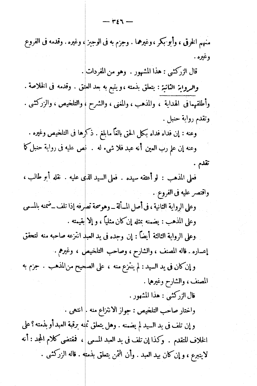 مِنْهُمْ الْخِرَقِيُّ، وَأَبُو بَكْرٍ، وَغَيْرُهُمَا. وَجَزَمَ بِهِ فِي الْوَجِيزِ، وَغَيْرِهِ. وَقَدَّمَهُ فِي الْفُرُوعِ وَغَيْرِهِ. قَالَ الزَّرْكَشِيُّ: هَذَا الْمَشْهُورُ. وَهُوَ مِنْ الْمُفْرَدَاتِ، وَالرِّوَايَةُ الثَّانِيَةُ: يَتَعَلَّقُ بِذِمَّتِهِ، وَيُتْبَعُ بِهِ بَعْدَ الْعِتْقِ. وَقَدَّمَهُ فِي الْخُلَاصَةِ. وَأَطْلَقَهُمَا فِي الْهِدَايَةِ، وَالْمُذْهَبِ، وَالْمُغْنِي، وَالشَّرْحِ، وَالتَّلْخِيصِ، وَالزَّرْكَشِيُّ. وَتَقَدَّمَ رِوَايَةُ حَنْبَلٍ. وَعَنْهُ: إنْ فَدَاهُ فَدَاهُ بِكُلِّ الْحَقِّ بَالِغًا مَا بَلَغَ. ذَكَرَهَا فِي التَّلْخِيصِ وَغَيْرِهِ. وَعَنْهُ إنْ عَلِمَ رَبُّ الْعَيْنِ أَنَّهُ عَبْدٌ فَلَا شَيْءَ لَهُ. نَصَّ عَلَيْهِ فِي رِوَايَةِ حَنْبَلٍ كَمَا تَقَدَّمَ. فَعَلَى الْمَذْهَبِ: لَوْ أَعْتَقَهُ سَيِّدُهُ. فَعَلَى السَّيِّدِ الَّذِي عَلَيْهِ. نَقَلَهُ أَبُو طَالِبٍ، وَاقْتَصَرَ عَلَيْهِ فِي الْفُرُوعِ. وَعَلَى الرِّوَايَةِ الثَّانِيَةِ، فِي أَصْلِ الْمَسْأَلَةِ وَهُوَ صِحَّةُ تَصَرُّفِهِ إذَا تَلِفَ ضَمِنَهُ بِالْمُسَمَّى وَعَلَى الْمَذْهَبِ: يَضْمَنُهُ بِمِثْلِهِ إنْ كَانَ مِثْلِيًّا، وَإِلَّا بِقِيمَتِهِ. وَعَلَى الرِّوَايَةِ الثَّالِثَةِ أَيْضًا: إنْ وَجَدَهُ فِي يَدِ الْعَبْدِ انْتَزَعَهُ صَاحِبُهُ مِنْهُ لِتَحَقُّقِ إعْسَارِهِ. قَالَهُ الْمُصَنِّفُ، وَالشَّارِحُ، وَصَاحِبُ التَّلْخِيصِ، وَغَيْرُهُمْ. وَإِنْ كَانَ فِي يَدِ السَّيِّدِ: لَمْ يُنْتَزَعْ مِنْهُ، عَلَى الصَّحِيحِ مِنْ الْمَذْهَبِ. جَزَمَ بِهِ الْمُصَنِّفُ، وَالشَّارِحُ وَغَيْرُهُمَا. قَالَ الزَّرْكَشِيُّ: هَذَا الْمَشْهُورُ. وَاخْتَارَ صَاحِبُ التَّلْخِيصِ: جَوَازَ الِانْتِزَاعِ مِنْهُ. انْتَهَى. وَإِنْ تَلِفَ فِي يَدِ السَّيِّدِ لَمْ يَضْمَنْهُ. وَهَلْ يَتَعَلَّقُ ثَمَنُهُ بِرَقَبَةِ الْعَبْدِ أَوْ بِذِمَّتِهِ؟ عَلَى الْخِلَافِ الْمُتَقَدِّمِ. وَكَذَا إنْ تَلِفَ فِي يَدِ الْعَبْدِ الْمُسَمَّى، فَمُقْتَضَى كَلَامِ الْمَجْدِ: أَنَّهُ لَا يُنْتَزَعُ، وَإِنْ كَانَ بِيَدِ الْعَبْدِ. وَأَنَّ الثَّمَنَ يَتَعَلَّقُ بِذِمَّتِهِ. قَالَهُ الزَّرْكَشِيُّ.
