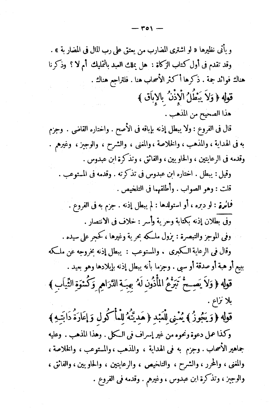 قَوْلُهُ (وَلَا يَبْطُلُ الْإِذْنُ بِالْإِبَاقِ) هَذَا الصَّحِيحُ مِنْ الْمَذْهَبِ. قَالَ فِي الْفُرُوعِ: وَلَا يَبْطُلُ إذْنُهُ بِإِبَاقِهِ فِي الْأَصَحِّ. وَاخْتَارَهُ الْقَاضِي. وَجَزَمَ بِهِ فِي الْهِدَايَةِ، وَالْمُذْهَبِ، وَالْخُلَاصَةِ، وَالْمُغْنِي، وَالشَّرْحِ، وَالْوَجِيزِ، وَغَيْرِهِمْ. وَقَدَّمَهُ فِي الرِّعَايَتَيْنِ، وَالْحَاوِيَيْنِ، وَالْفَائِقِ، وَتَذْكِرَةِ ابْنِ عَبْدُوسٍ. وَقِيلَ: يَبْطُلُ. اخْتَارَهُ ابْنُ عَبْدُوسٍ فِي تَذْكِرَتِهِ. وَقَدَّمَهُ فِي الْمُسْتَوْعِبِ. قُلْت: وَهُوَ الصَّوَابُ. وَأَطْلَقَهُمَا فِي التَّلْخِيصِ.