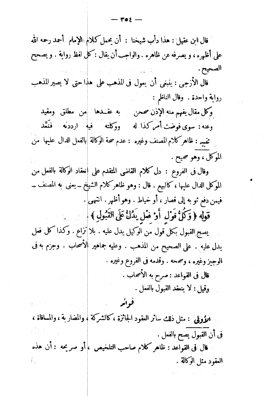 قَالَ ابْنُ عَقِيلٍ: هَذَا دَأْبُ شَيْخِنَا: أَنْ يَحْمِلَ كَلَامَ الْإِمَامِ أَحْمَدَ - رَحِمَهُ اللَّهُ - عَلَى أَظْهَرِهِ، وَيَصْرِفَهُ عَنْ ظَاهِرِهِ. وَالْوَاجِبُ أَنْ يُقَالَ: كُلُّ لَفْظٍ رِوَايَةٌ. وَيُصَحِّحُ الصَّحِيحَ. قَالَ الْأَزَجِيُّ: يَنْبَغِي أَنْ يَقُولَ فِي الْمَذْهَبِ عَلَى هَذَا حَتَّى لَا يَصِيرَ الْمَذْهَبُ رِوَايَةً وَاحِدَةً. وَقَالَ النَّاظِمُ: