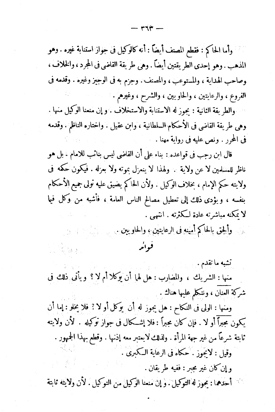 تُشْبِهُ مَا تَقَدَّمَ. مِنْهَا: الشَّرِيكُ، وَالْمُضَارِبُ: هَلْ لَهُمَا أَنْ يُوَكِّلَا أَمْ لَا وَيَأْتِي ذَلِكَ فِي شَرِكَةِ الْعَنَانِ، وَنَتَكَلَّمُ عَلَيْهَا هُنَاكَ.