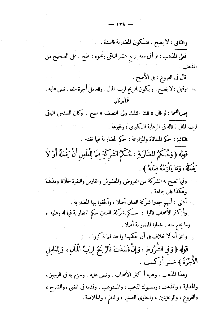 وَالثَّانِي: لَا يَصِحُّ. فَتَكُونُ الْمُضَارَبَةُ فَاسِدَةً. فَعَلَى الْمَذْهَبِ: لَوْ أَتَى مَعَهُ بِرُبُعِ عُشْرِ الْبَاقِي وَنَحْوِهِ: صَحَّ. عَلَى الصَّحِيحِ مِنْ الْمَذْهَبِ. قَالَ فِي الْفُرُوعِ: فِي الْأَصَحِّ. وَقِيلَ: لَا يَصِحُّ. وَيَكُونُ الرِّبْحُ لِرَبِّ الْمَالِ. وَلِلْعَامِلِ أُجْرَةُ مِثْلِهِ. نَصَّ عَلَيْهِ.