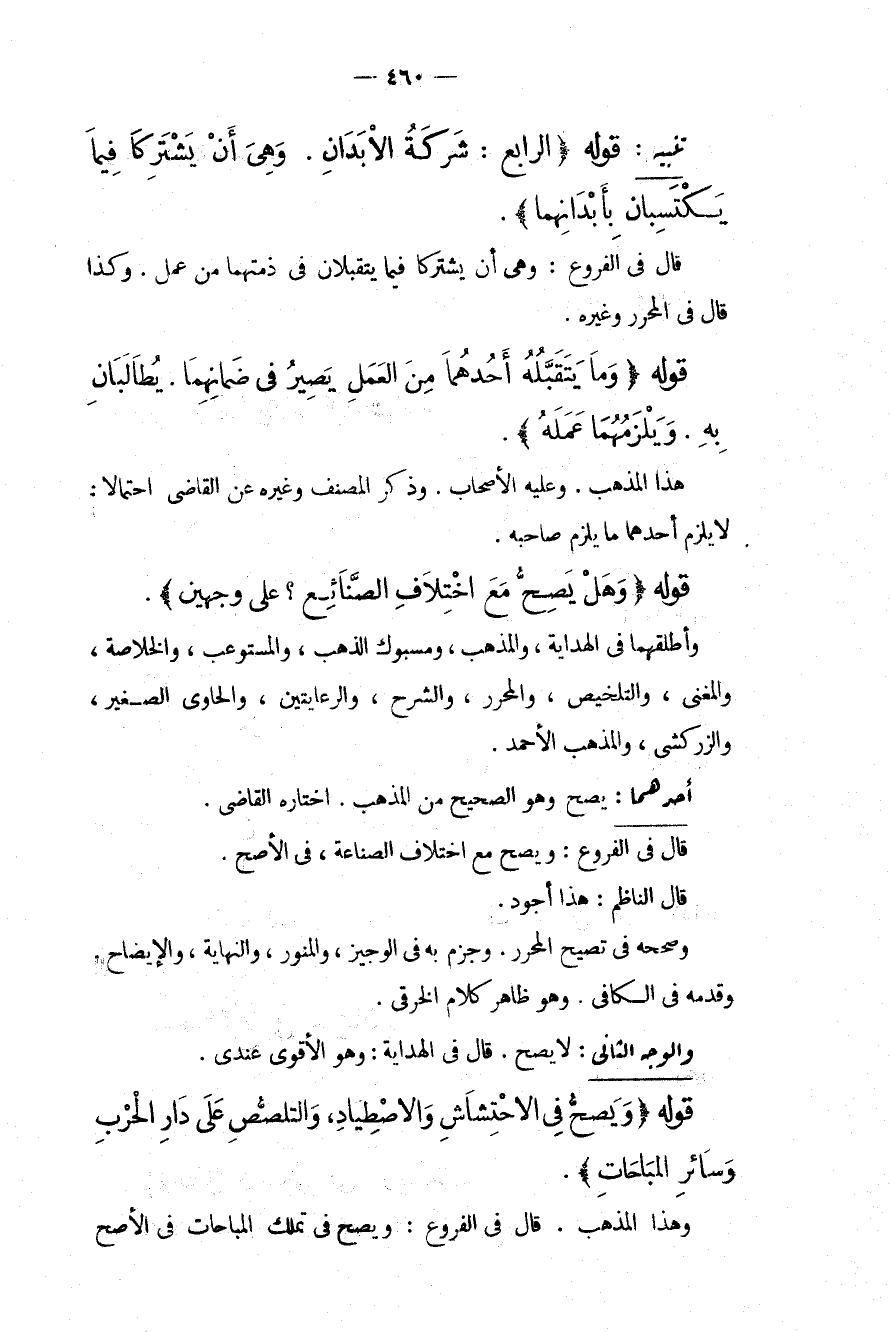 قَوْلُهُ (وَهَلْ يَصِحُّ مَعَ اخْتِلَافِ الصَّنَائِعِ؟ عَلَى وَجْهَيْنِ) . وَأَطْلَقَهُمَا فِي الْهِدَايَةِ، وَالْمُذْهَبِ، وَمَسْبُوكِ الذَّهَبِ، وَالْمُسْتَوْعِبِ، وَالْخُلَاصَةِ، وَالْمُغْنِي، وَالتَّلْخِيصِ، وَالْمُحَرَّرِ، وَالشَّرْحِ، وَالرِّعَايَتَيْنِ، وَالْحَاوِي الصَّغِيرِ، وَالزَّرْكَشِيُّ، وَالْمَذْهَبِ الْأَحْمَدِ.