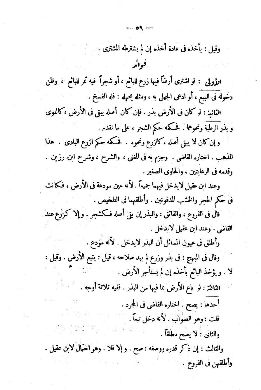 الْأُولَى: لَوْ اشْتَرَى أَرْضًا فِيهَا زَرْعٌ لِلْبَائِعِ، أَوْ شَجَرًا فِيهِ ثَمَرٌ لِلْبَائِعِ، وَظَنَّ دُخُولَهُ فِي الْبَيْعِ، أَوْ ادَّعَى الْجَهْلَ بِهِ، وَمِثْلُهُ يَجْهَلُهُ: فَلَهُ الْفَسْخُ.