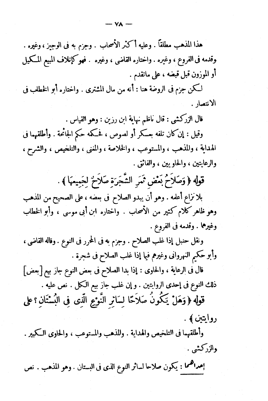 قَوْلُهُ (وَصَلَاحُ بَعْضِ ثَمَرِ الشَّجَرَةِ صَلَاحٌ لِجَمِيعِهَا) . بِلَا نِزَاعٍ أَعْلَمُهُ. وَهُوَ أَنْ يَبْدُوَ الصَّلَاحُ فِي بَعْضِهِ، عَلَى الصَّحِيحِ مِنْ الْمَذْهَبِ وَهُوَ ظَاهِرُ كَلَامِ كَثِيرٍ مِنْ الْأَصْحَابِ. وَاخْتَارَهُ ابْنُ أَبِي مُوسَى، وَأَبُو الْخَطَّابِ وَغَيْرُهُمَا. وَقَدَّمَهُ فِي الْفُرُوعِ. وَنَقَلَ حَنْبَلٌ إذَا غَلَبَ الصَّلَاحُ. وَجَزَمَ بِهِ فِي الْمُحَرَّرِ فِي النَّوْعِ. وَقَالَهُ الْقَاضِي وَأَبُو حَكِيمٍ النَّهْرَوَانِيُّ وَغَيْرُهُمْ فِيمَا إذَا غَلَبَ الصَّلَاحُ فِي شَجَرَةٍ. قَالَ فِي الرِّعَايَةِ، وَالْحَاوِي: إذَا بَدَا الصَّلَاحُ فِي بَعْضِ النَّوْعِ جَازَ بَيْعُ [بَعْضِ] ذَلِكَ النَّوْعِ فِي إحْدَى الرِّوَايَتَيْنِ. وَإِنْ غَلَبَ جَازَ بَيْعُ الْكُلِّ. نَصَّ عَلَيْهِ. قَوْلُهُ (وَهَلْ يَكُونُ صَلَاحًا لِسَائِرِ النَّوْعِ الَّذِي فِي الْبُسْتَانِ؟ عَلَى رِوَايَتَيْنِ) . وَأَطْلَقَهُمَا فِي التَّلْخِيصِ وَالْهِدَايَةِ. وَالْمُذْهَبِ وَالْمُسْتَوْعِبِ، وَالْحَاوِي الْكَبِيرِ وَالزَّرْكَشِيُّ.