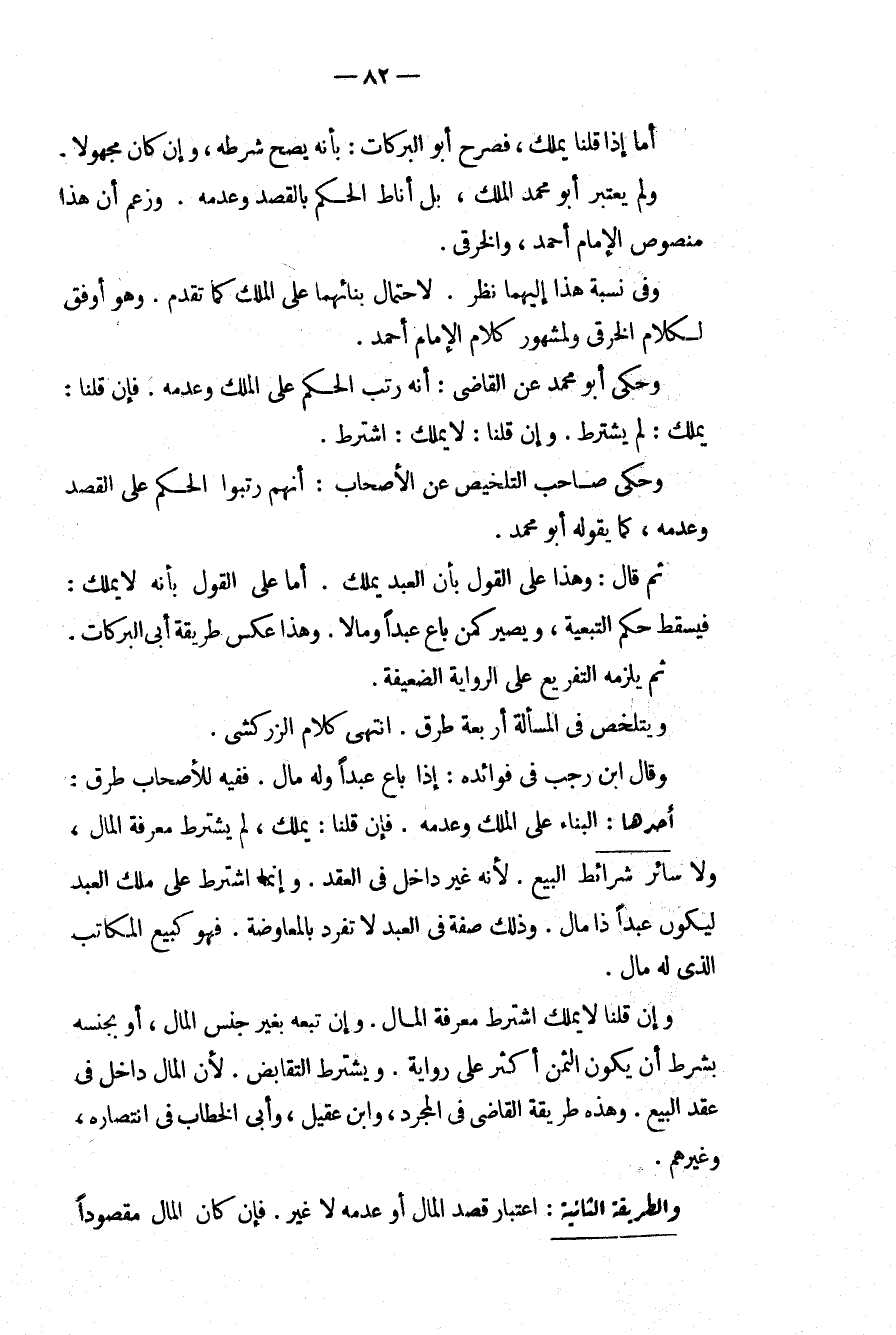أَمَّا إذَا قُلْنَا يَمْلِكُ، فَصَرَّحَ أَبُو الْبَرَكَاتِ: بِأَنَّهُ يَصِحُّ شَرْطُهُ، وَإِنْ كَانَ مَجْهُولًا. وَلَمْ يَعْتَبِرْ أَبُو مُحَمَّدٍ الْمِلْكَ، بَلْ أَنَاطَ الْحُكْمَ بِالْقَصْدِ وَعَدَمِهِ. وَزَعَمَ أَنَّ هَذَا مَنْصُوصُ الْإِمَامِ أَحْمَدَ، وَالْخِرَقِيِّ. وَفِي نَسَبِهِ هَذَا إلَيْهِمَا نَظَرٌ. لِاحْتِمَالِ بِنَائِهِمَا عَلَى الْمِلْكِ كَمَا تَقَدَّمَ وَهُوَ أَوْفَقُ لِكَلَامِ الْخِرَقِيِّ وَلِمَشْهُورِ كَلَامِ الْإِمَامِ أَحْمَدَ. وَحَكَى أَبُو مُحَمَّدٍ عَنْ الْقَاضِي: أَنَّهُ رَتَّبَ الْحُكْمَ عَلَى الْمِلْكِ وَعَدَمِهِ. فَإِنْ قُلْنَا: يَمْلِكُ: لَمْ يُشْتَرَطْ. وَإِنْ قُلْنَا: لَا يَمْلِكُ: اُشْتُرِطَ. وَحَكَى صَاحِبُ التَّلْخِيصِ عَنْ الْأَصْحَابِ: أَنَّهُمْ رَتَّبُوا الْحُكْمَ عَلَى الْقَصْدِ وَعَدَمِهِ، كَمَا يَقُولُهُ أَبُو مُحَمَّدٍ. ثُمَّ قَالَ: وَهَذَا عَلَى الْقَوْلِ بِأَنَّ الْعَبْدَ يَمْلِكُ. أَمَّا عَلَى الْقَوْلِ بِأَنَّهُ لَا يَمْلِكُ: فَيَسْقُطُ حُكْمُ التَّبَعِيَّةِ، وَيَصِيرُ كَمَنْ بَاعَ عَبْدًا وَمَالًا. وَهَذَا عَكْسُ طَرِيقَةِ أَبِي الْبَرَكَاتِ. ثُمَّ يَلْزَمُهُ التَّفْرِيعُ عَلَى الرِّوَايَةِ الضَّعِيفَةِ. وَيَتَلَخَّصُ فِي الْمَسْأَلَةِ أَرْبَعَةُ طُرُقٍ. انْتَهَى. كَلَامُ الزَّرْكَشِيّ. وَقَالَ ابْنُ رَجَبٍ فِي فَوَائِدِهِ: إذَا بَاعَ عَبْدًا وَلَهُ مَالٌ. فَفِيهِ لِلْأَصْحَابِ طُرُقٌ: