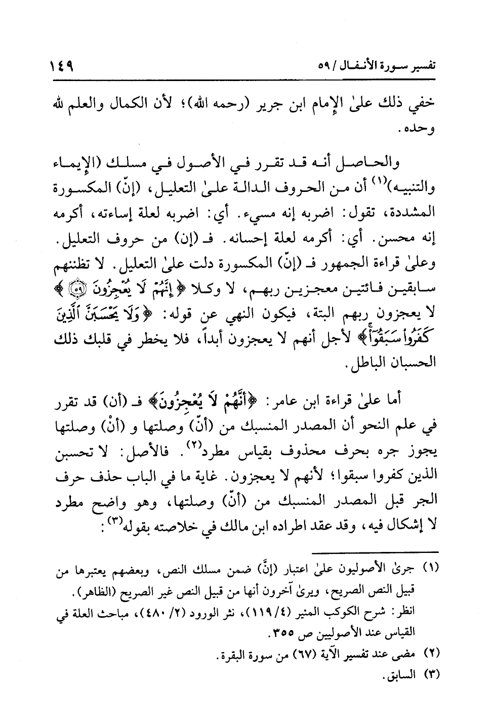 (¬1) جرى الأصوليون على اعتبار (إنَّ) ضمن مسلك النص، وبعضهم يعتبرها من قبيل النص الصريح، ويرى آخرون أنها من قبيل النص غير الصريح (الظاهر).