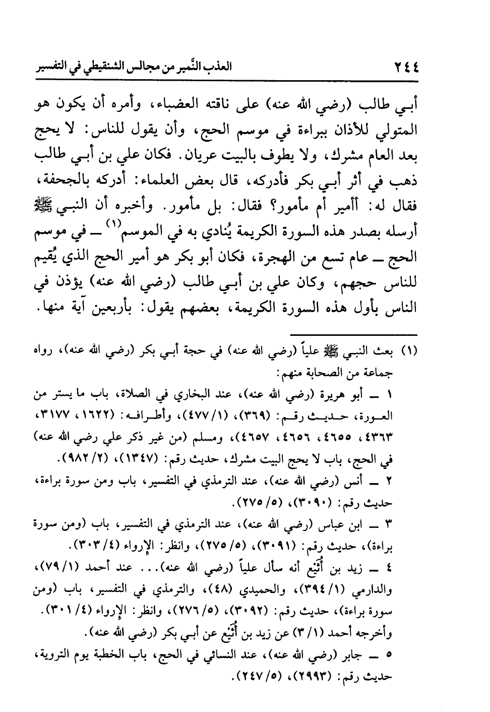(¬1) بَعْثُ النَّبِيِّ صلى الله عليه وسلم عَلِيّاً (رضي الله عنه) في حَجِّةِ أَبِي بَكْرٍ (رضي الله عنه) رواه جماعة من الصحابة، منهم:
