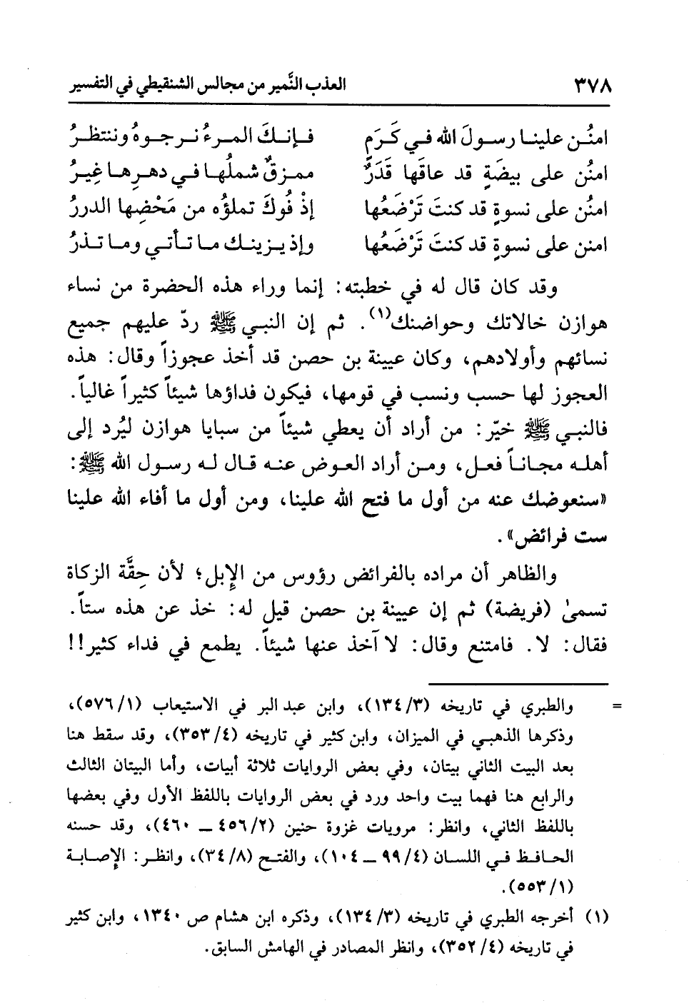 والظاهرُ أن مرادَه بالفرائضِ رؤوسٌ مِنَ الإبلِ؛ لأَنَّ حِقَّةَ الزكاةِ تُسَمَّى (فريضةً) ثم إن عيينةَ بنَ حصنٍ قِيلَ له: خُذْ عن هذه سِتًّا. فقال: لاَ. فَامْتَنَعَ وقال: لاَ آخُذُ عنها شيئًا. يطمعُ في فداءٍ كثيرٍ!!