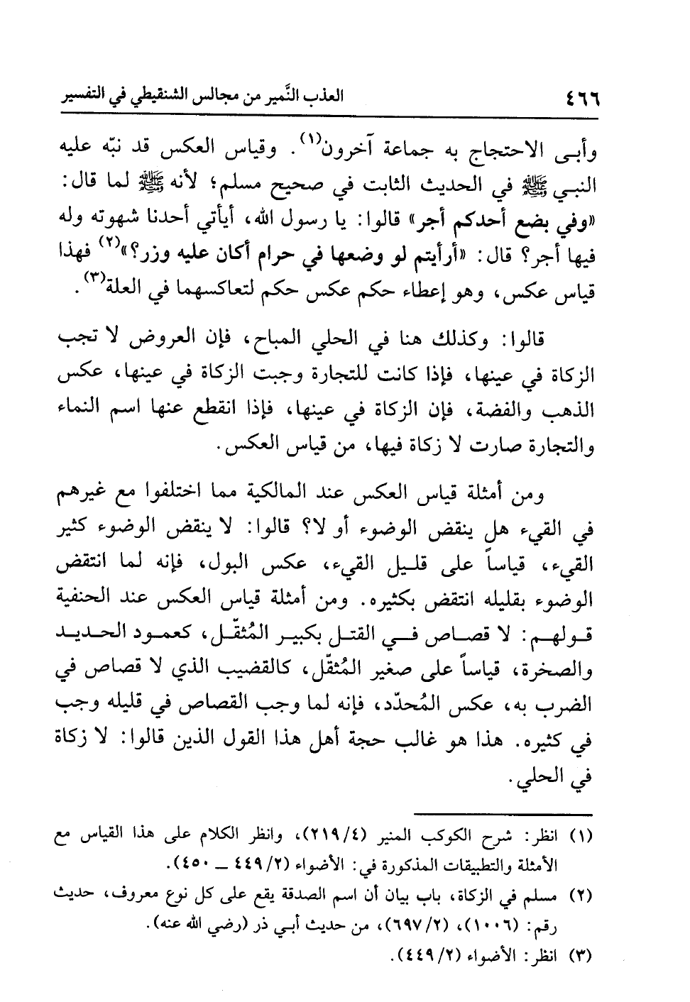 (¬1) انظر: شرح الكوكب المنير (4/ 219)، وانظر الكلام على هذا القياس مع الأمثلة والتطبيقات المذكورة في الأضواء (2/ 449 - 450).