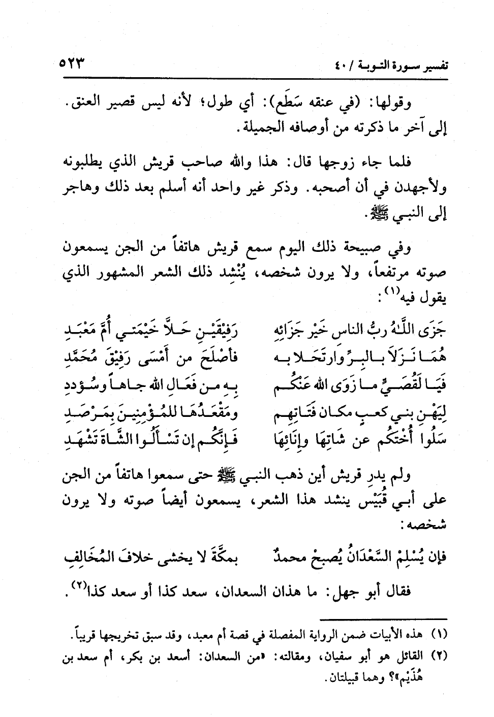 جَزَى اللَّهُ رُبُّ النَّاسِ خَيْرَ جَزَائِهِ ... رَفِيقَيْنِ حَلاَّ خَيْمَتَيْ أُمِّ مَعْبَدِ