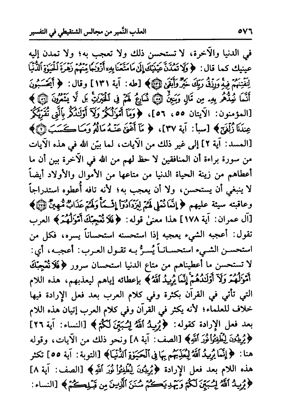 كقولِه: {يُرِيدُ اللَّهُ لِيُبَيِّنَ لَكُمْ} [النساء: آية 26] {يُرِيدُونَ لِيُطْفِؤُوا نُورَ اللَّهِ} [الصف: آية 8] ونحو ذلك من الآياتِ، وقولُه هنا: {إِنَّمَا يُرِيدُ اللَّهُ لِيُعَذِّبَهُمْ بِهَا فِي الْحَيَاةِ الدُّنْيَا} [التوبة: آية 55] تَكْثُرُ هذه اللامُ بعدَ فعلِ الإرادةِ {يُرِيدُونَ لِيُطْفِؤُوا نُورَ اللَّهِ} [الصف: آية 8] {يُرِيدُ اللَّهُ لِيُبَيِّنَ لَكُمْ وَيَهْدِيَكُمْ سُنَنَ الَّذِينَ مِنْ قَبْلِكُمْ} [النساء: