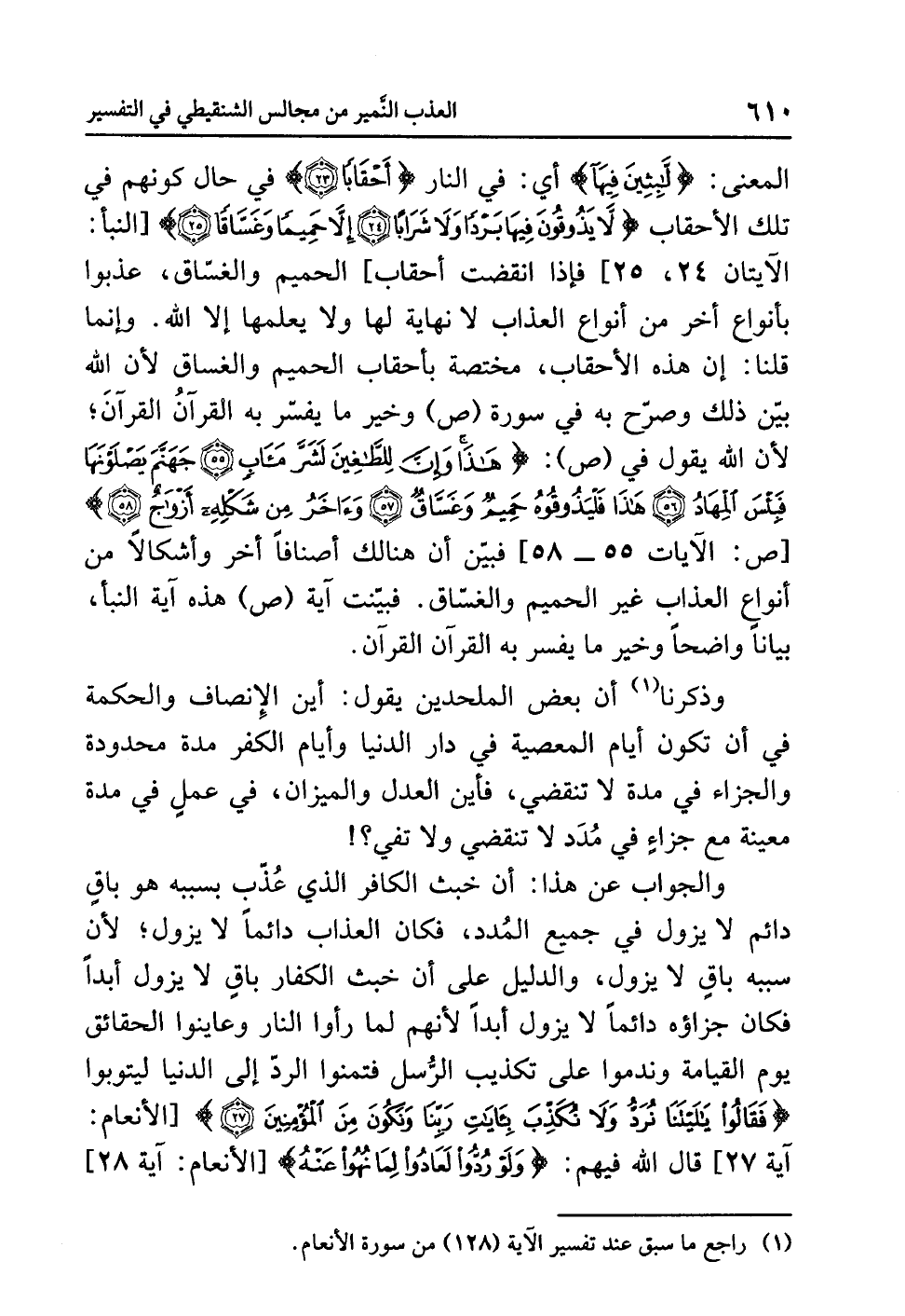 (¬1) راجع ما سبق عند تفسير الآية (128) من سورة الأنعام.