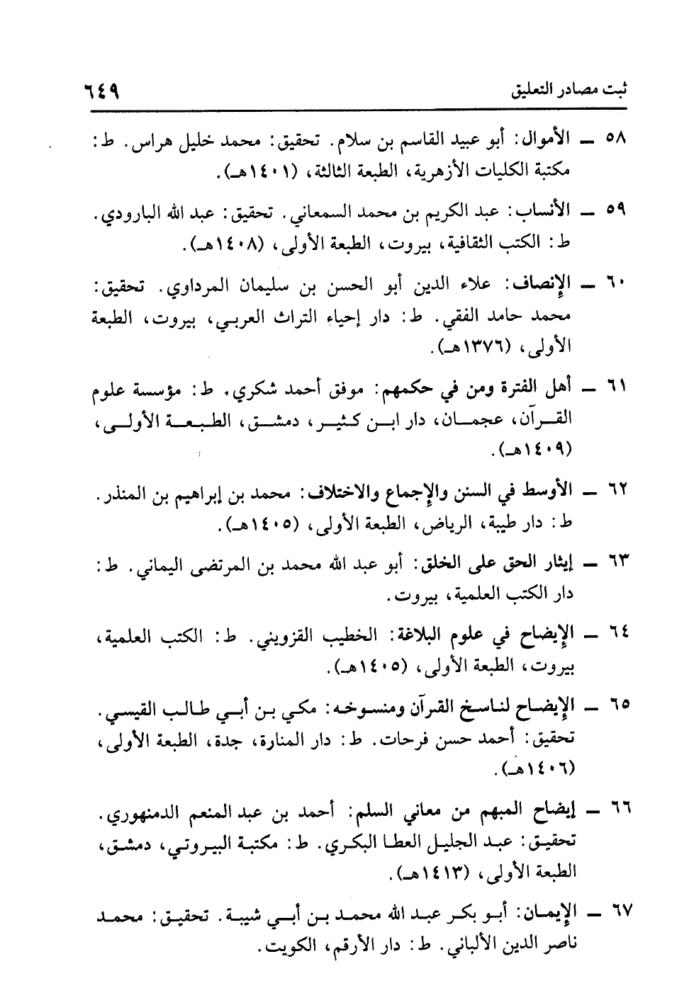 - الإيمان: أبو بكر عبد الله بن محمد بن أبى شيبة. تحقيق: محمد ناصر الدين الألباني. ط: دار الأرقم، الكويت.