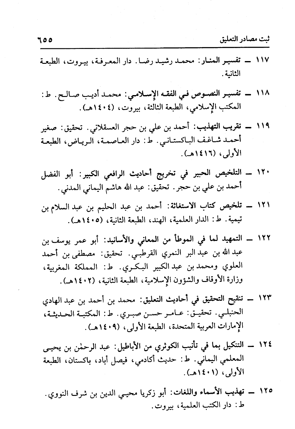 - التلخيص الحبير في تخريج أحاديث الرافعي الكبير: أبو الفضل أحمد بن علي بن حجر. تحقيق: عبد الله هاشم اليماني المدني.