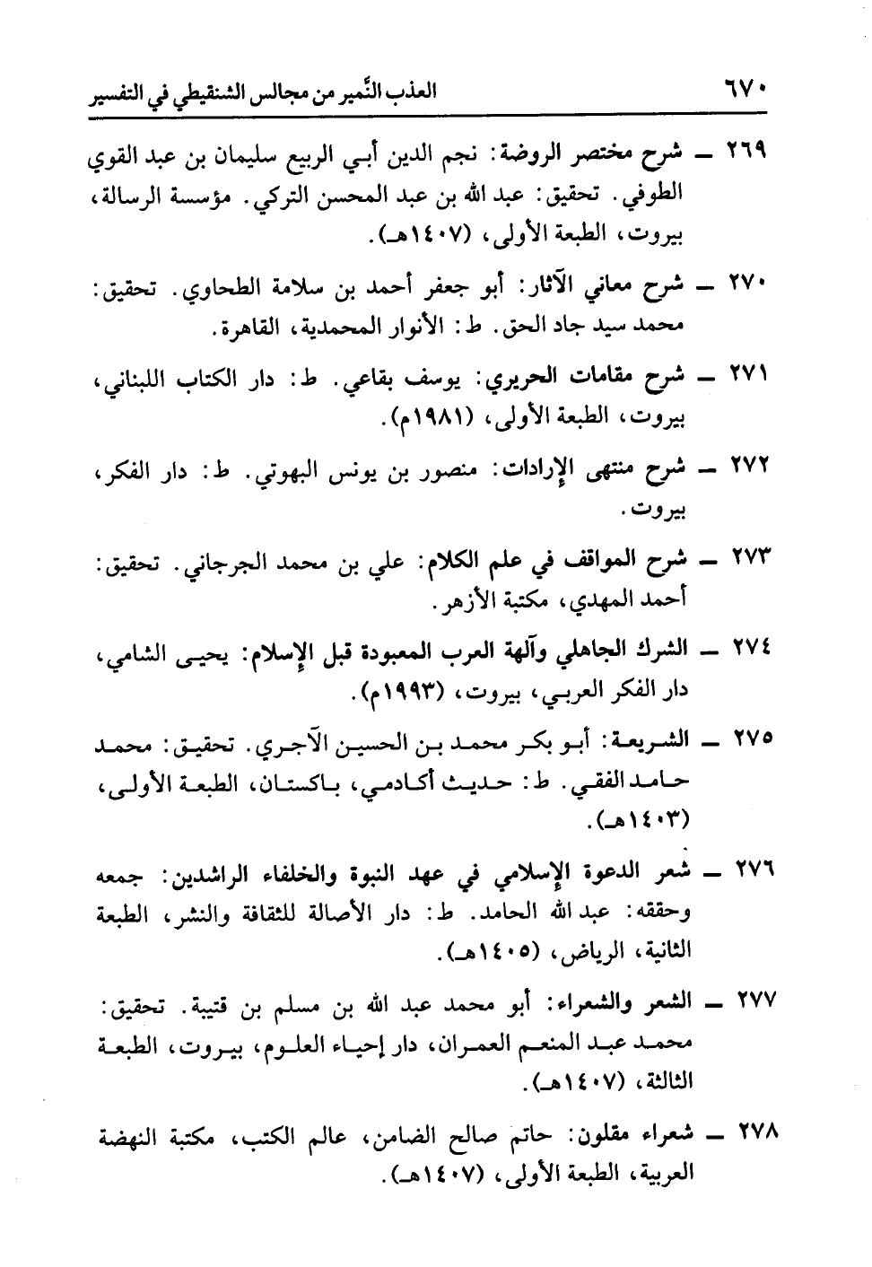 - الشريعة: أبو بكر محمد بن الحسين الآجري. تحقيق: محمد حامد الفقي. ط: حديث أكادمي، باكستان، الطبعة الأولى، (1403 هـ).