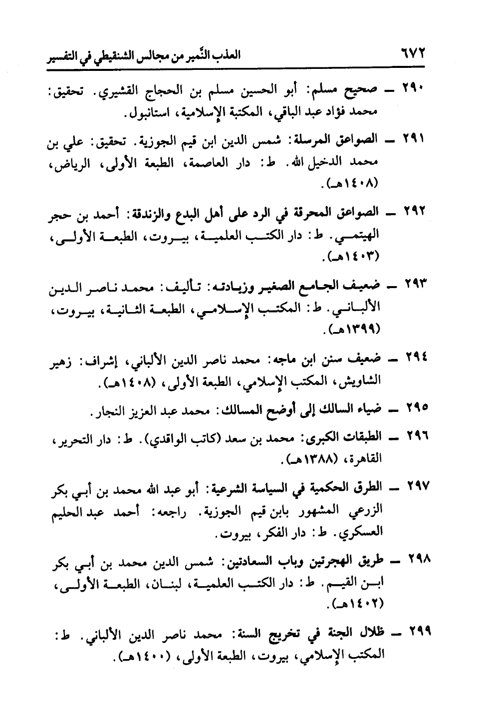 - طريق الهجرتين وباب السعادتين: شمس الدين محمد بن أبي بكر ابن القيم. ط: دار الكتب العلمية، لبنان، الطبعة الأولى، (1402 هـ).