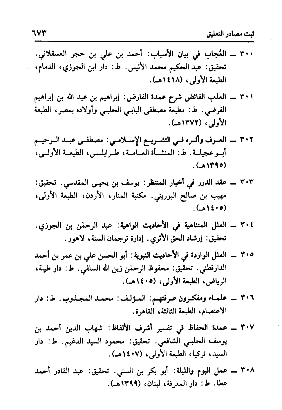 - العُجاب في بيان الأسباب: أحمد بن علي بن حجر العسقلاني. تحقيق: عبد الحكيم محمد الأنيس. ط: دار ابن الجوزي، الدمام، الطبعة الأولى، (1418 هـ).
