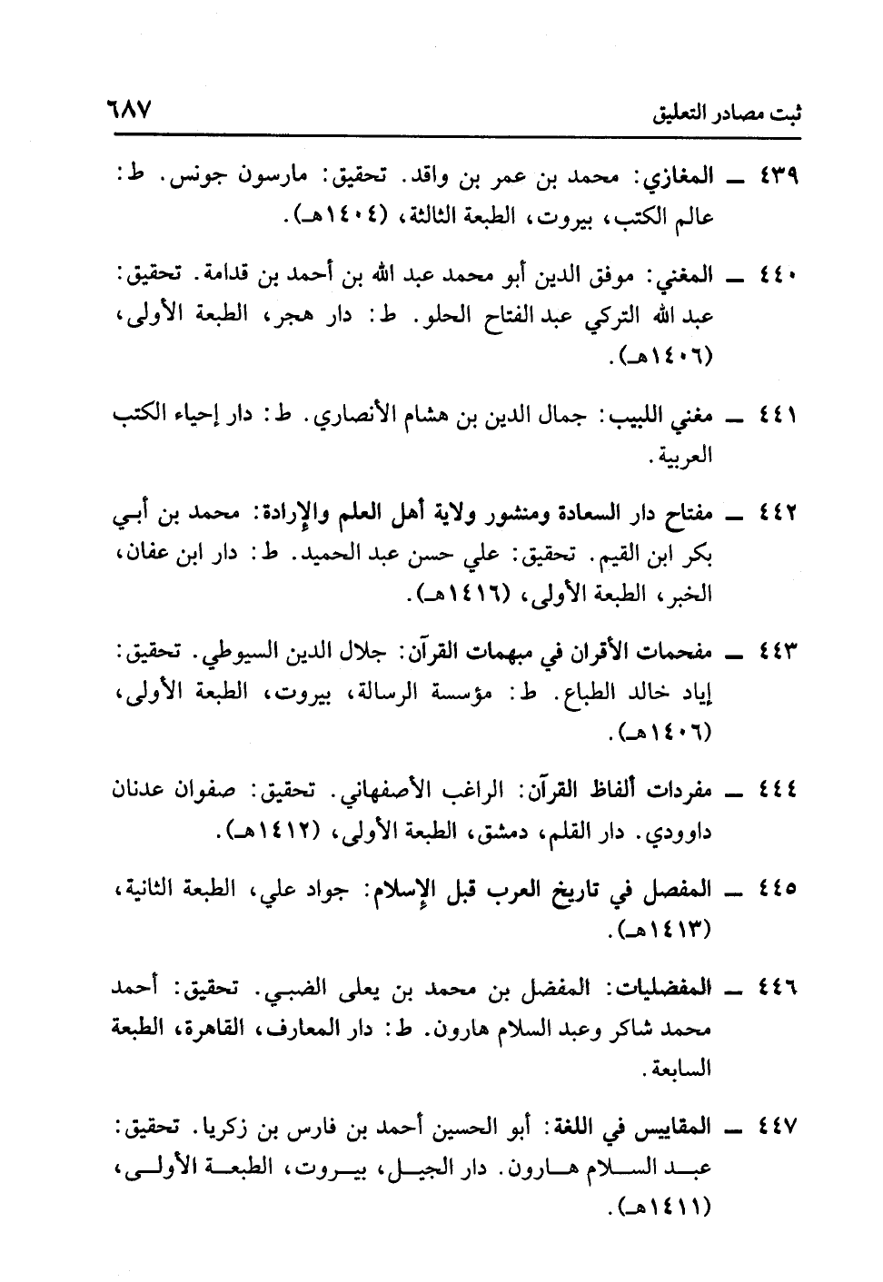 - مفتاح دار السعادة ومنشور ولاية أهل العلم والإرادة: محمد بن أبي بكر ابن القيم. تحقيق: علي حسن عبد الحميد. ط: دار ابن عفان، الخبر، الطبعة الأولى، (1416 هـ).