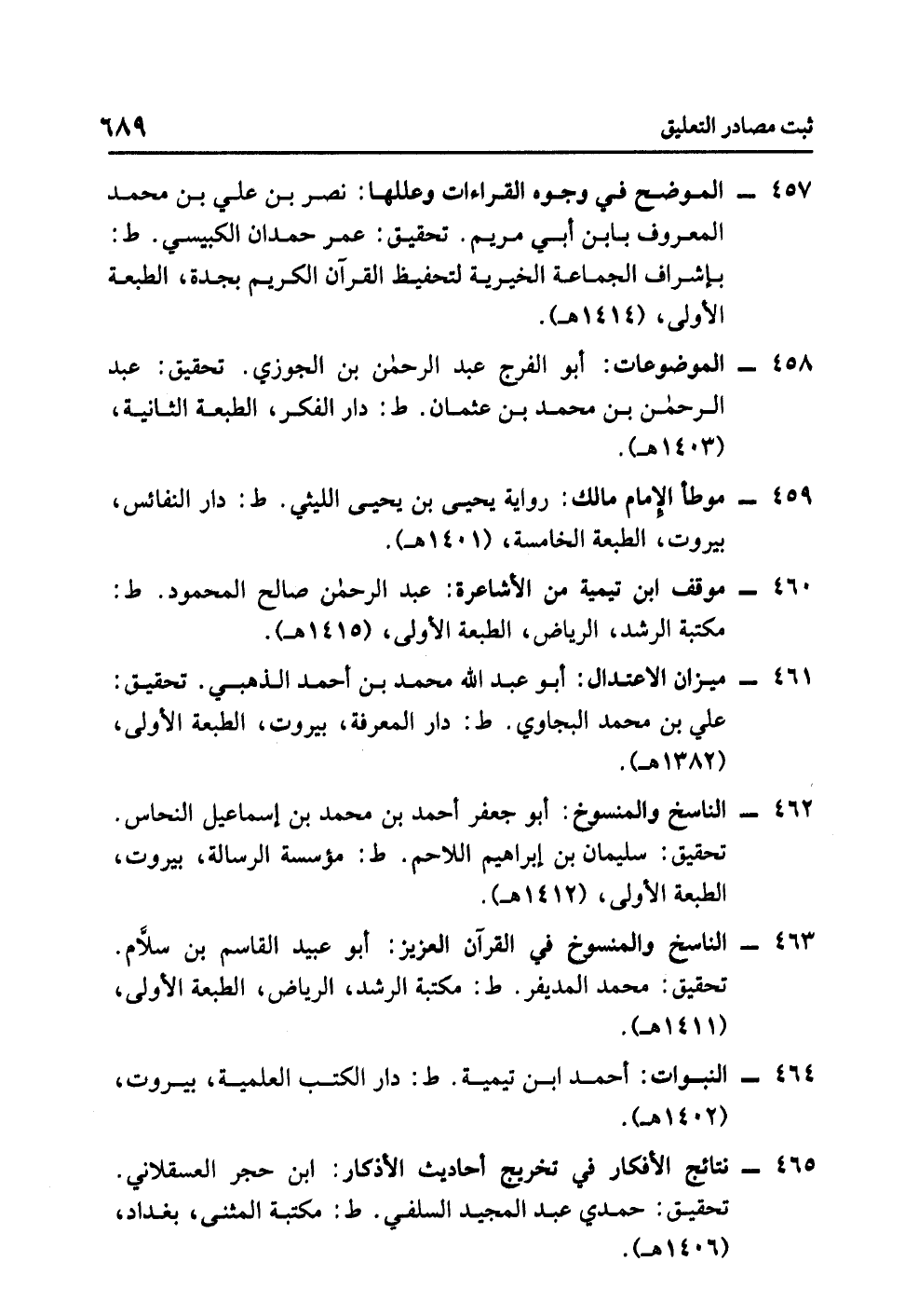 - الموضوعات: أبو الفرج عبد الرحمن بن الجوزي. تحقيق: عبد الرحمن بن محمد بن عثمان. ط: دار الفكر، الطبعة الثانية، (1403 هـ).