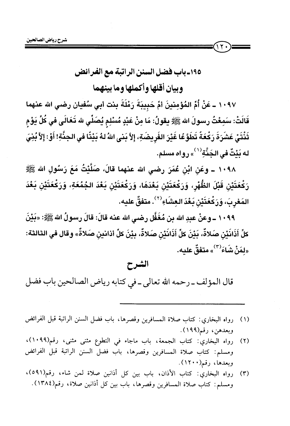 باب فضل السنن الراتبة مع الفرائض وبيان أقلها وأكملها وما بينهما