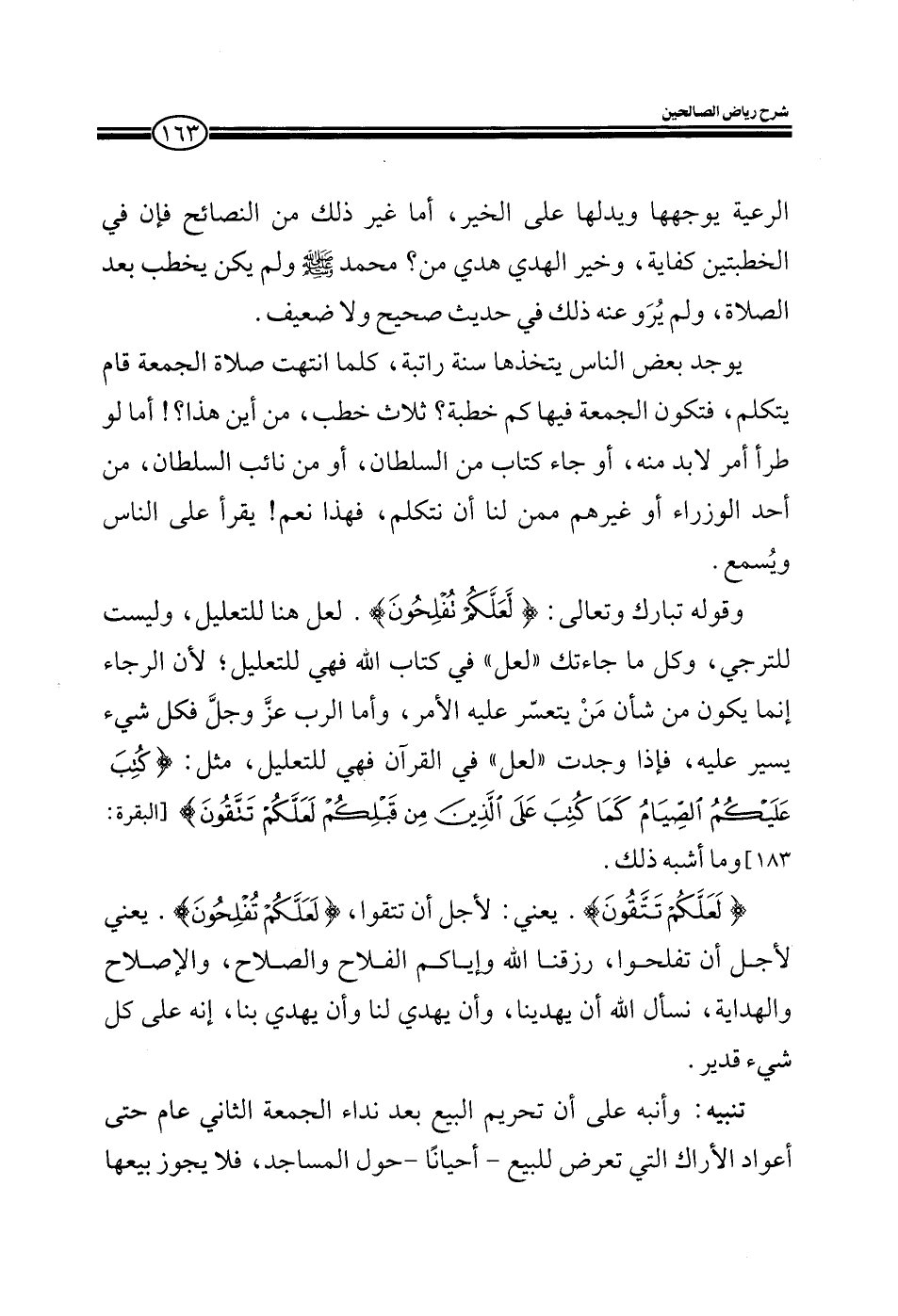 وقوله تبارك وتعالى: {لعلكم تفلحون} لعل هنا للتعليل وليست للترجي، وكلما جاءتك لعل في كتاب الله فهي للتعليل، لأن الرجاء إنما يكون في شأن من يتعسر عليه الأمر، وأما الرب عز وجل فكل شيء يسير عليه، فإذا وجدت لعل في القرآن فهي للتعليل مثل: {يا أيها الذين آمنوا كتب عليكم الصيام كما كتب على الذين من قبلكم لعلكم تتقون} وما أشبه ذلك.